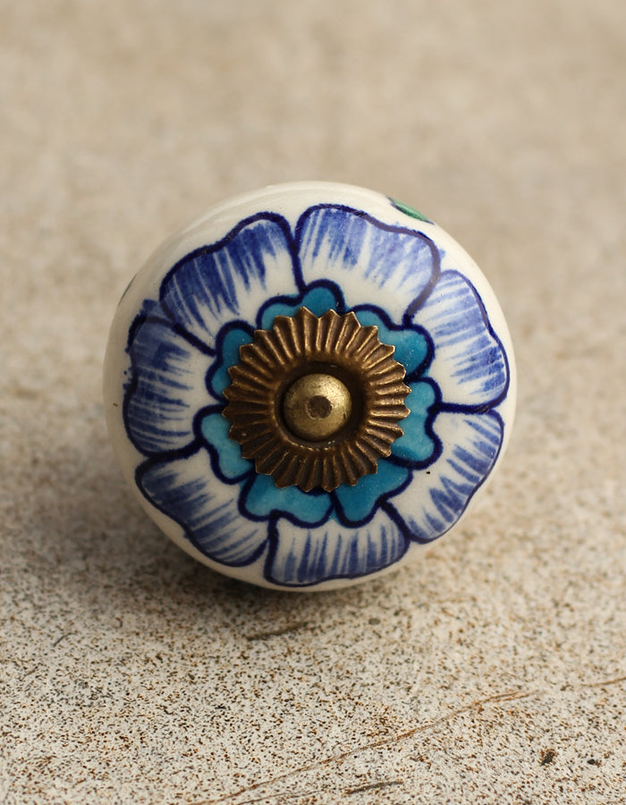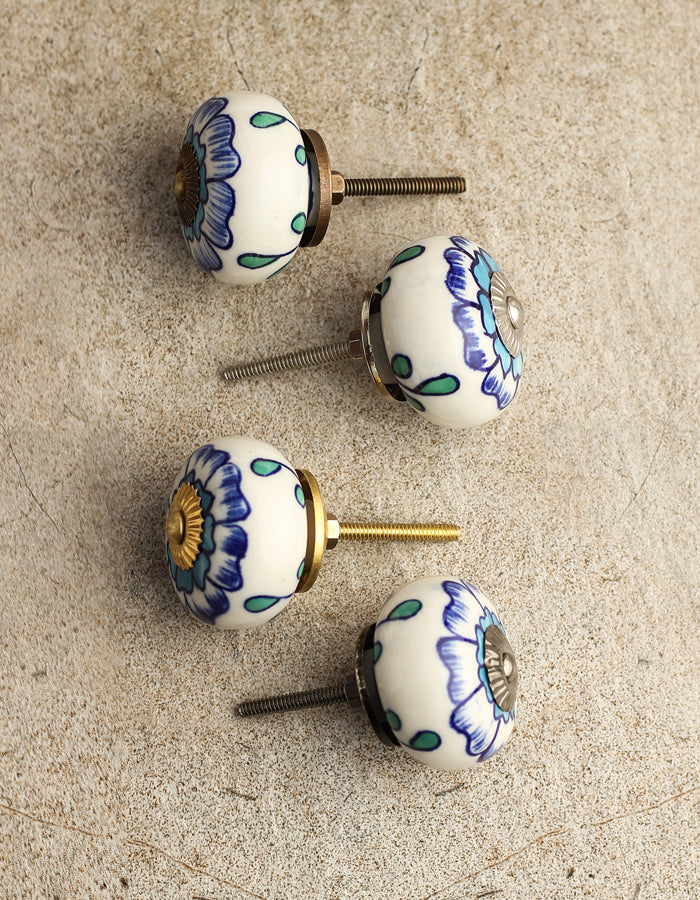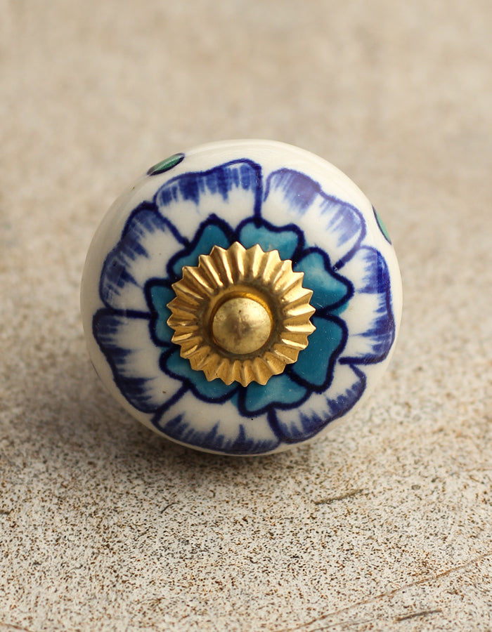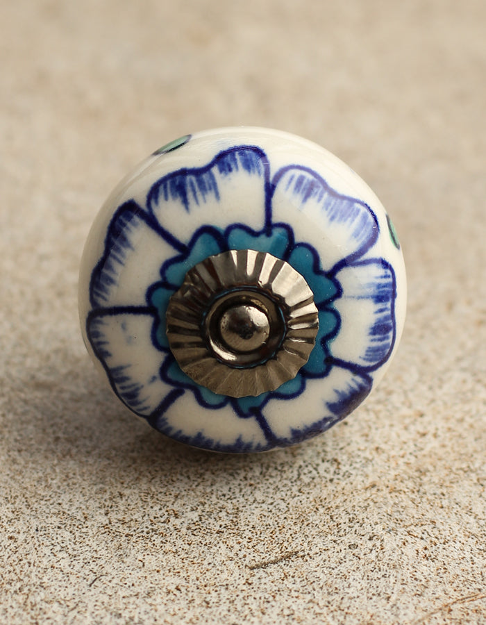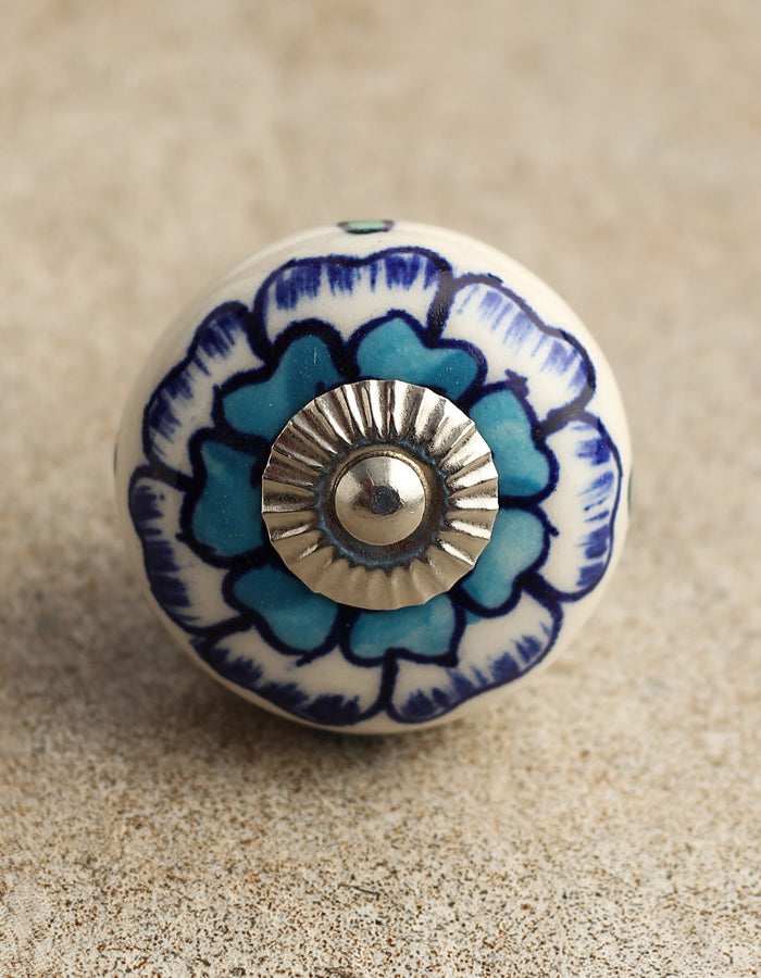 Stylish White And Turquoise Ceramic Cabinet Knob