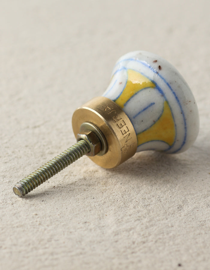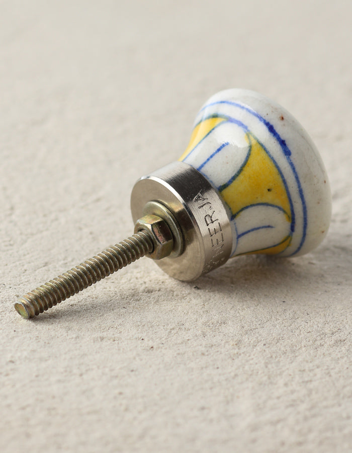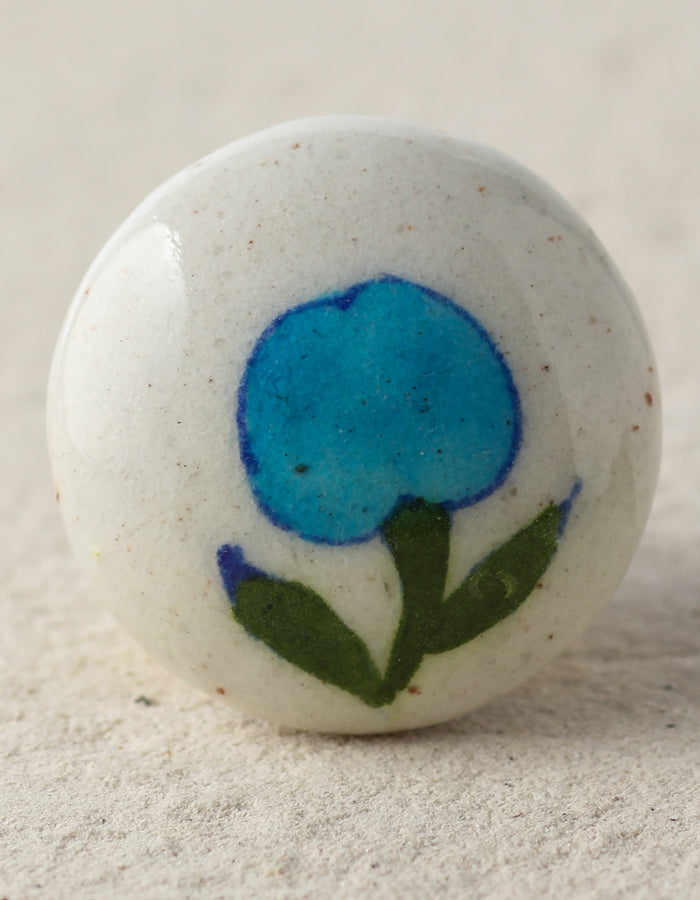 Stylish White Ceramic Blue Pottery Door Knob With Turquoise Flower