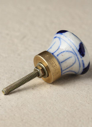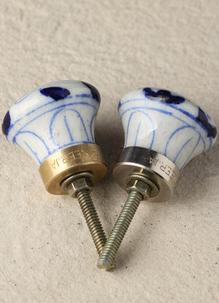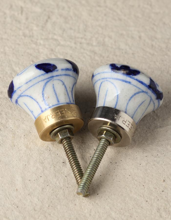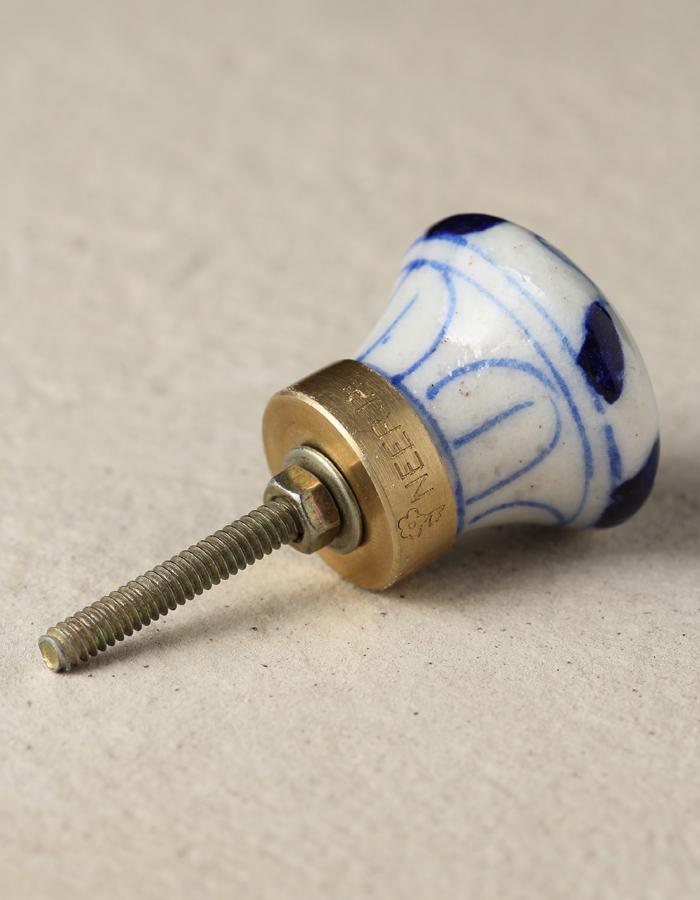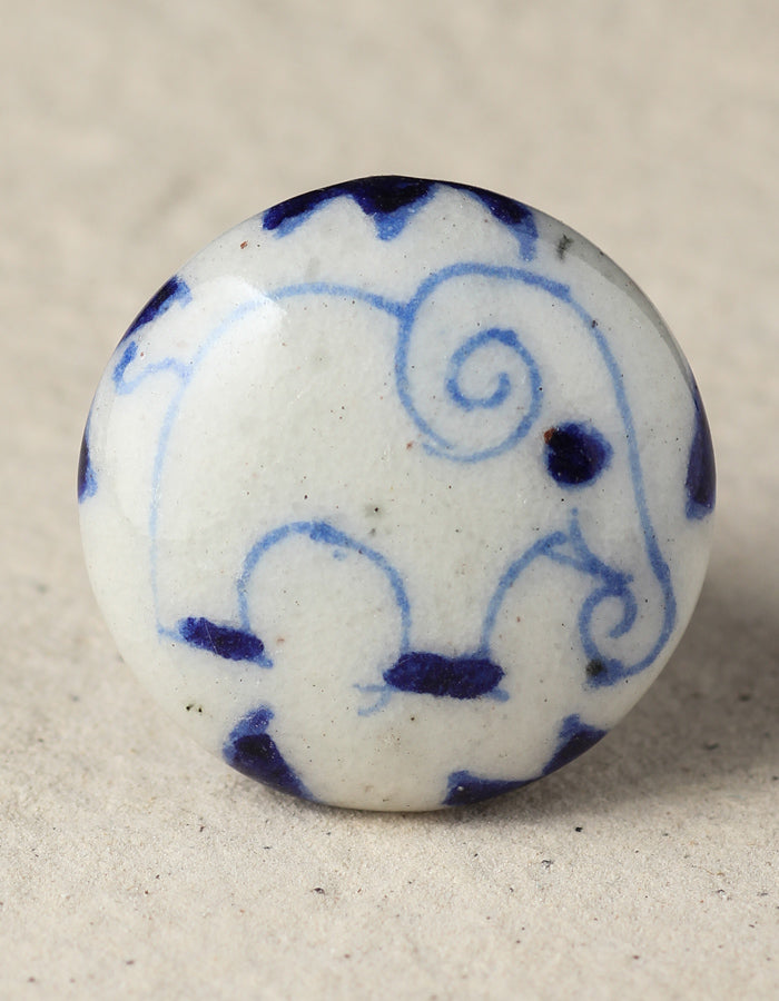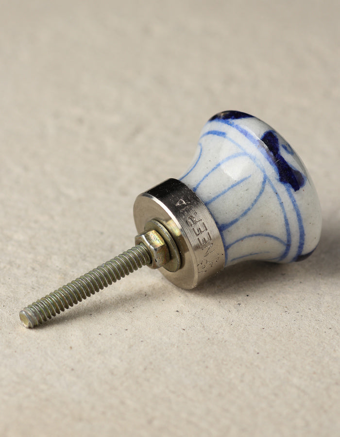 Stylish White Ceramic Blue Pottery Knob With Handmade Blue Elephant Design