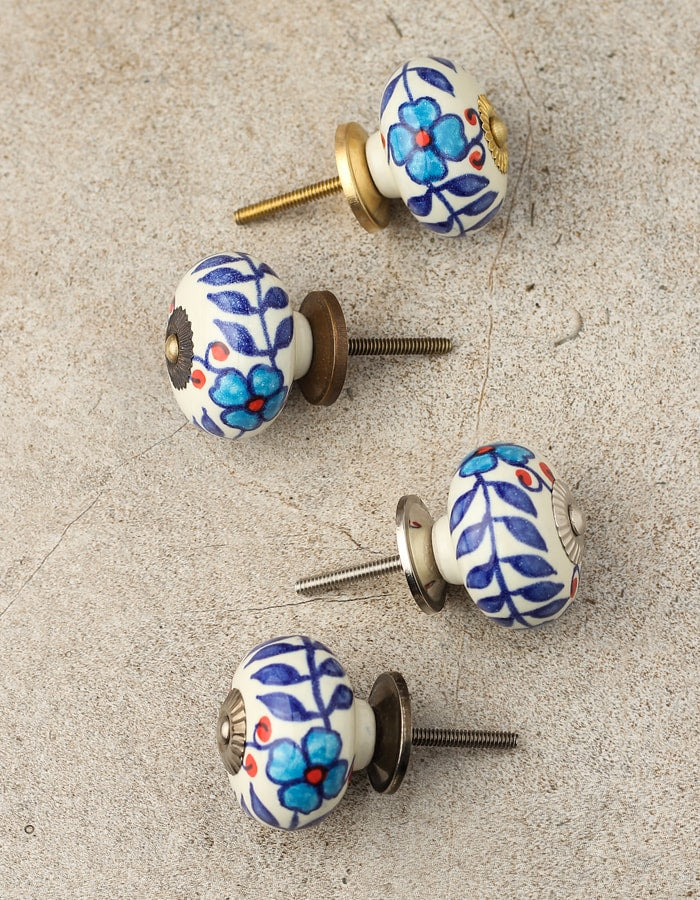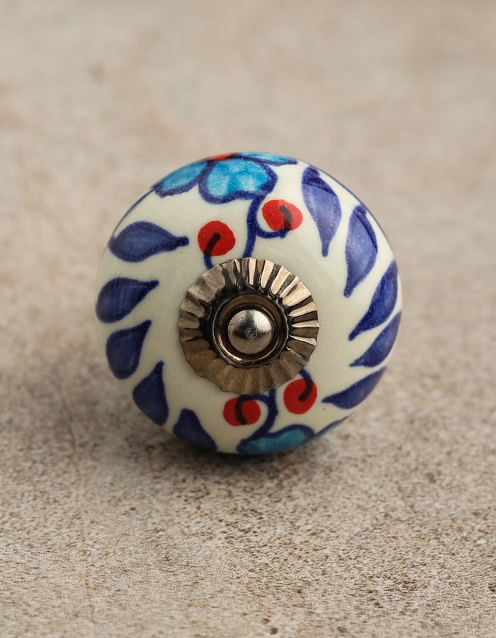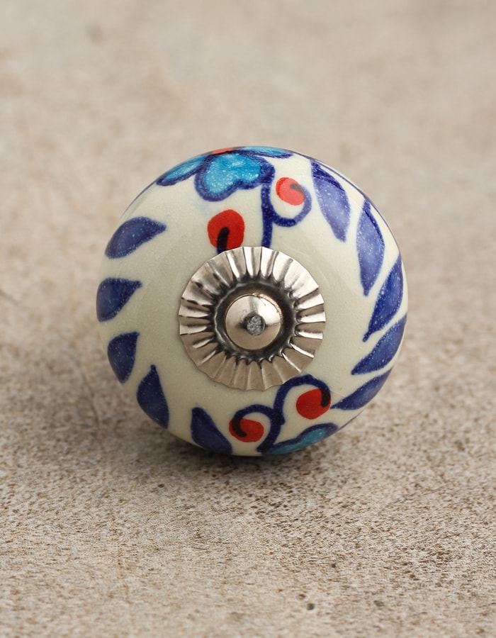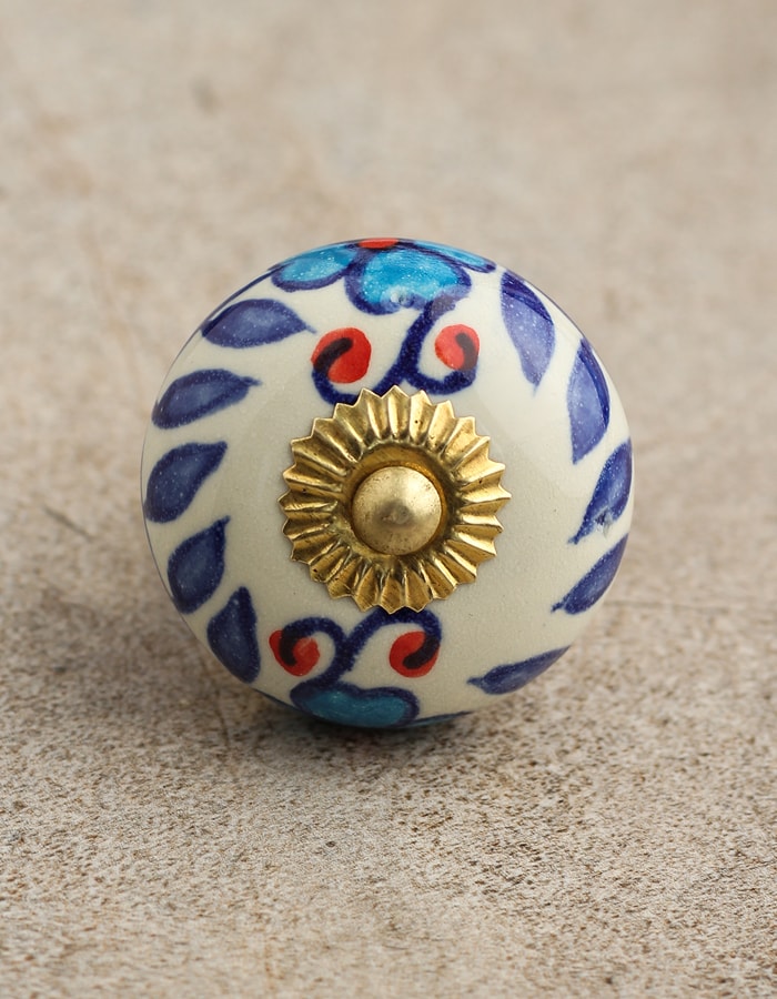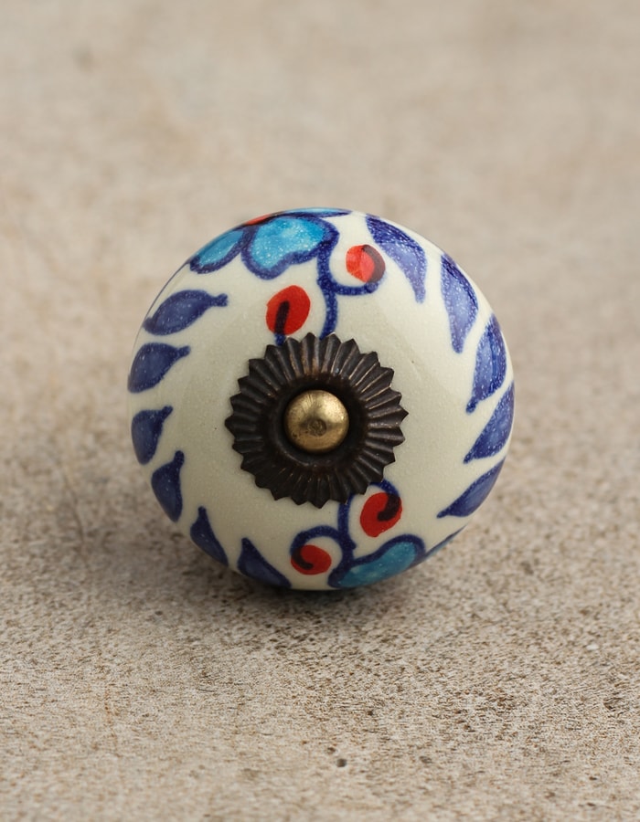 Stylish White Ceramic Cabinet Knob With Multicolor Print