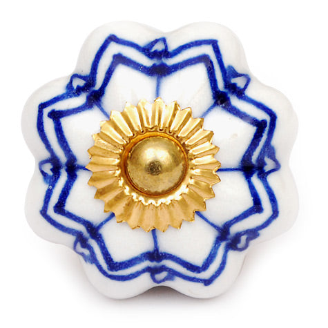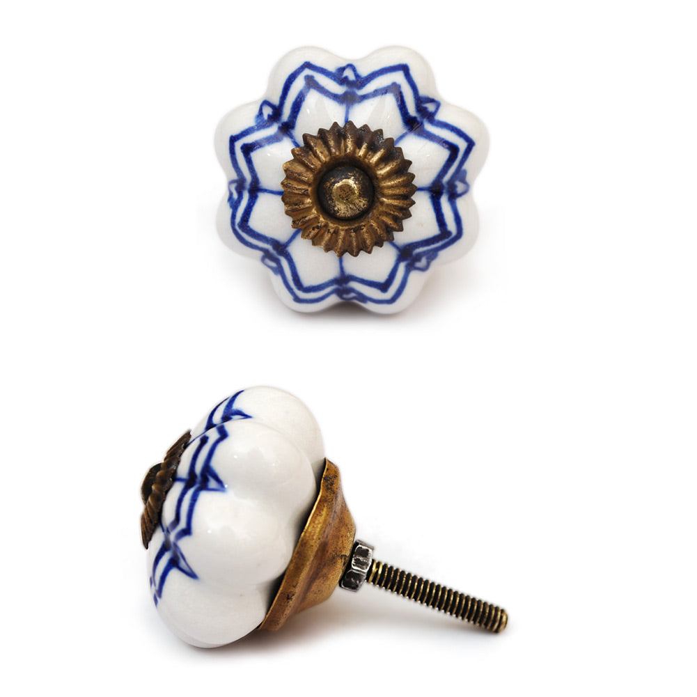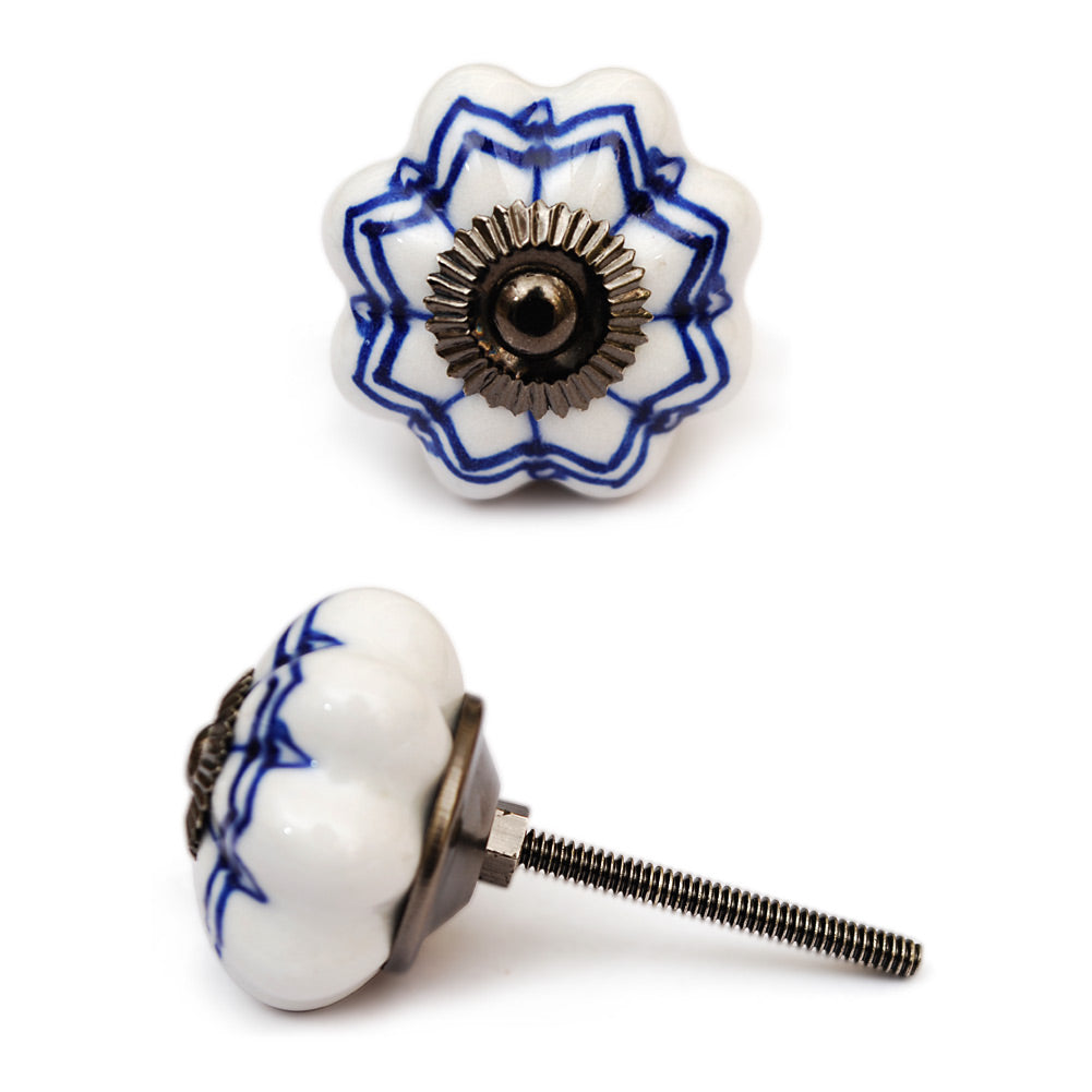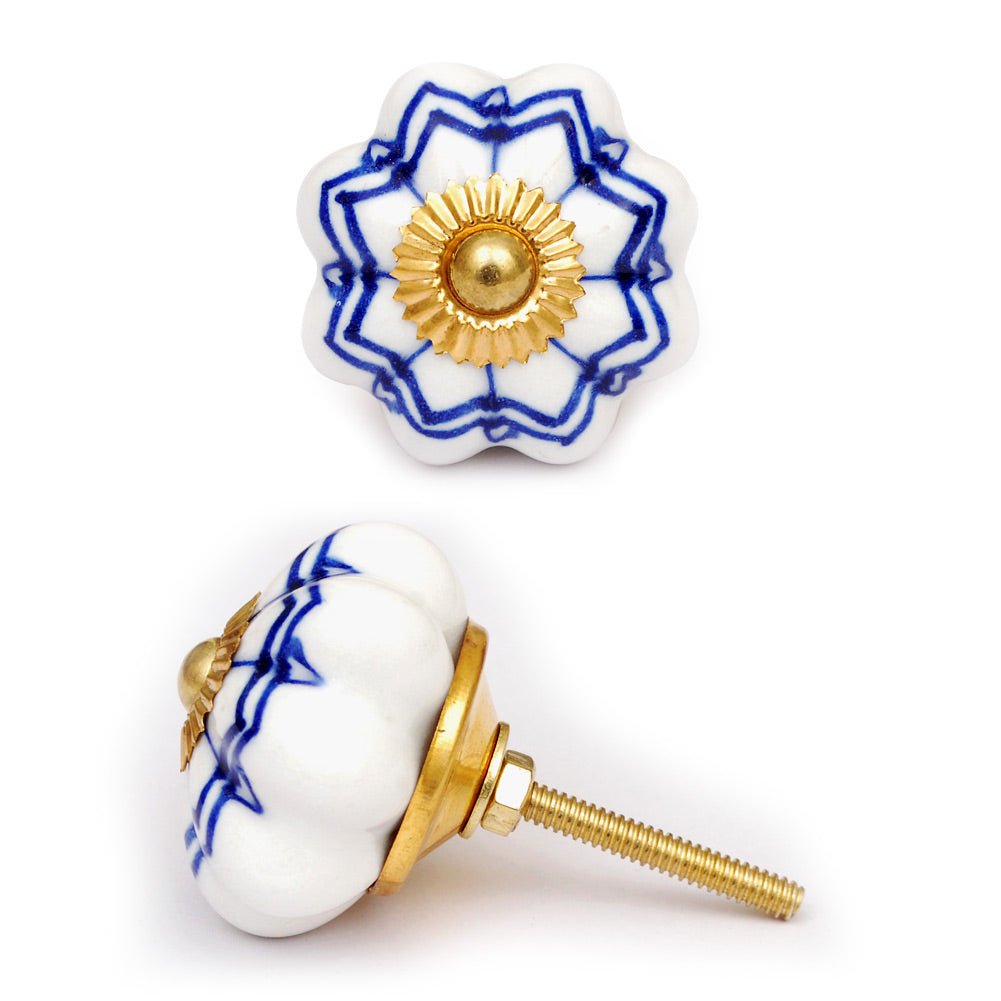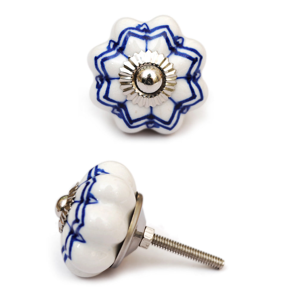 Stylish White Ceramic Drawer Knob With Blue Design