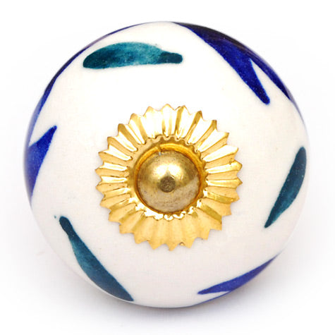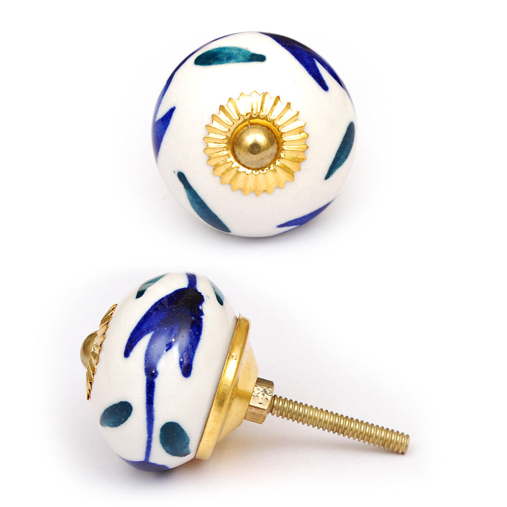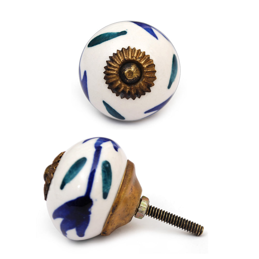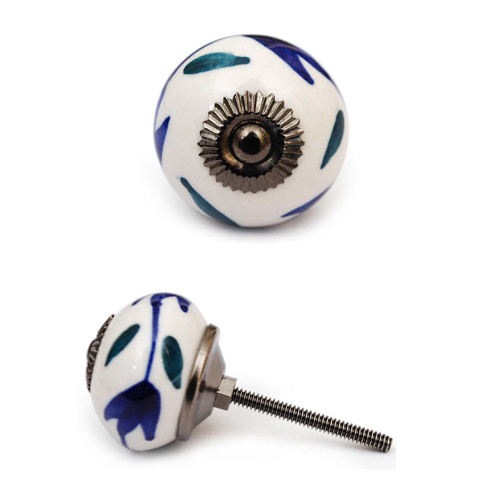 Stylish White Kitchen Cabinet Knob With Blue Design