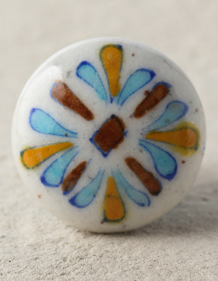 Stylish White Round Ceramic Blue Pottery Drawer Knob With Multicolor Petals is beautifully crafted with utmost care to give you the best sense of richness and elegance for different furnitures of your household.