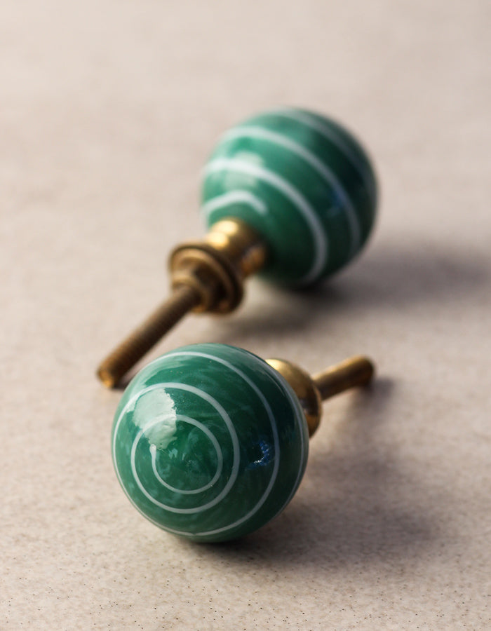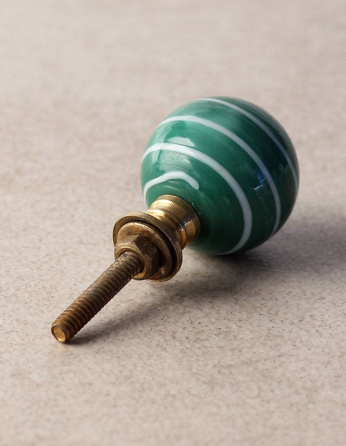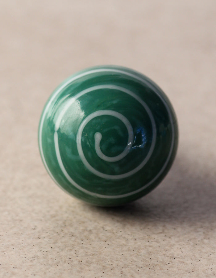 Teal Green Round Glass Drawer Cabinet Knob With White Spiral