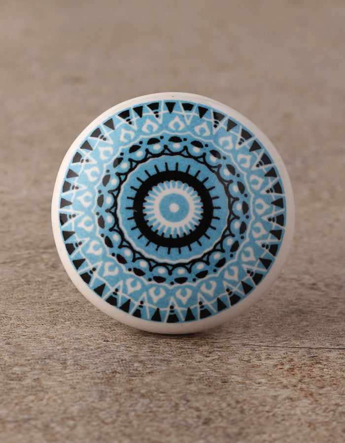 Turquoise and Black design Flat Screen Printed Cabinet Knob
