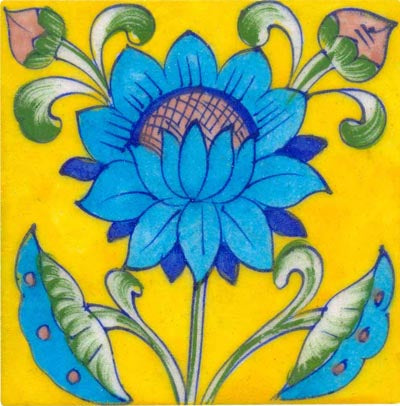 turquoise and blue flower on yellow tile 4x4