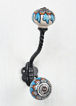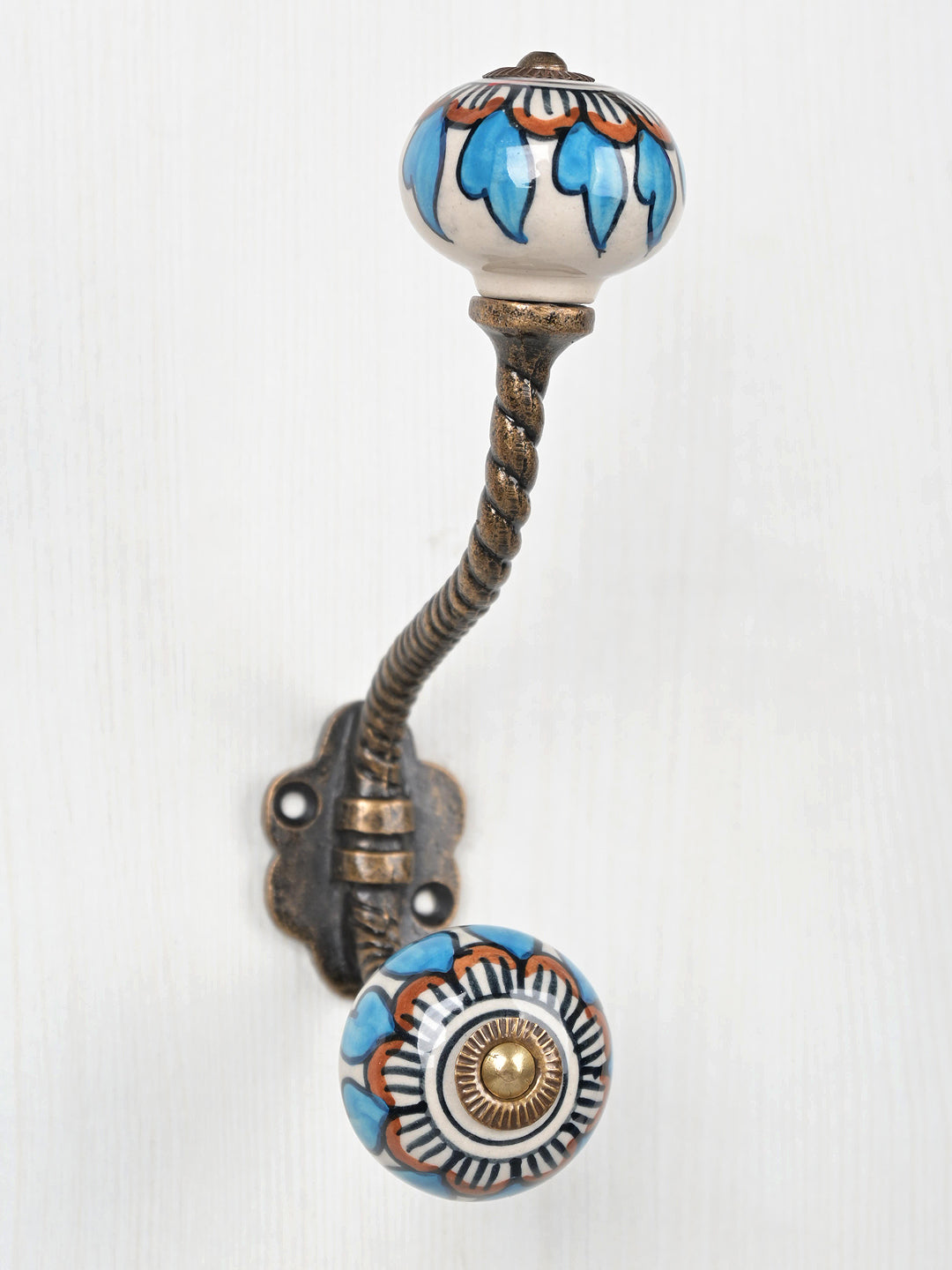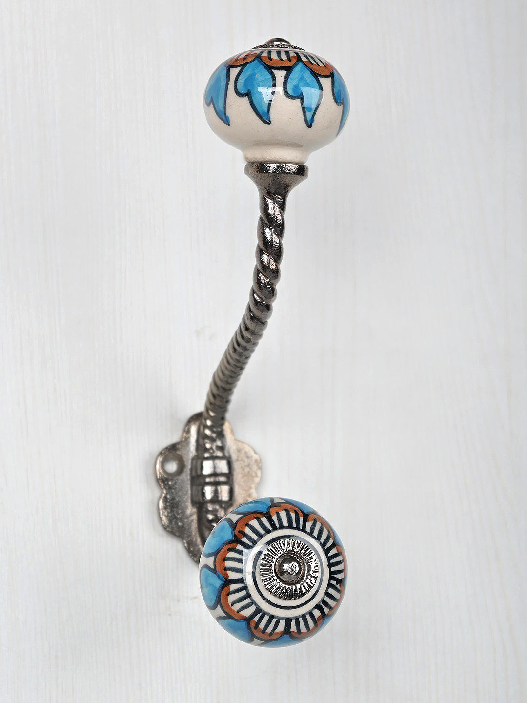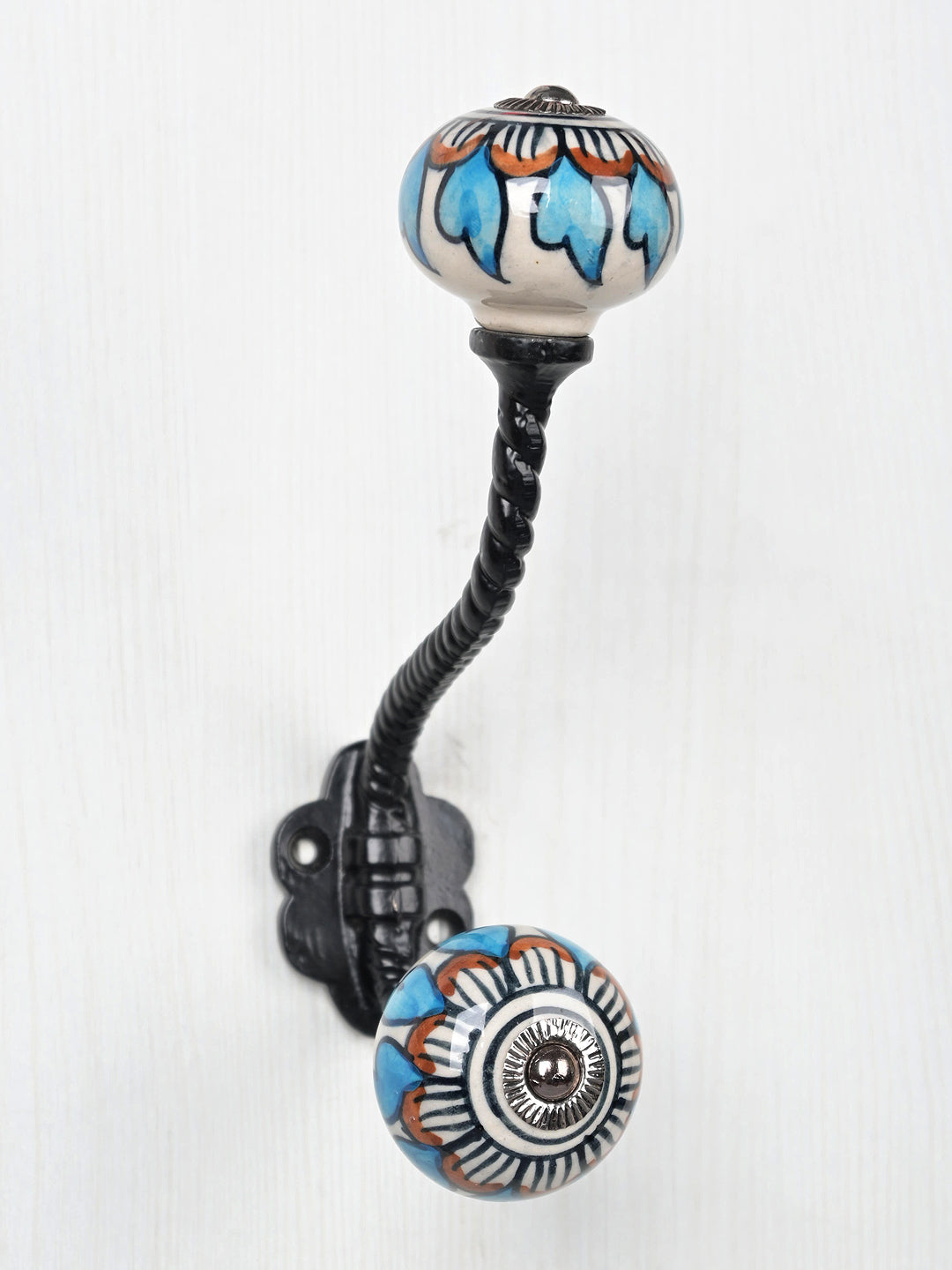 Turquoise and Brown Ceramic Cabinet Knob With Metal Wall Hange