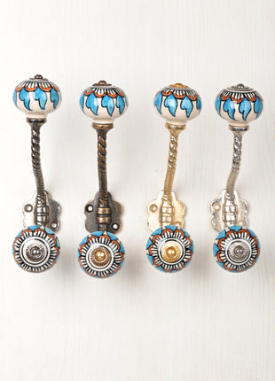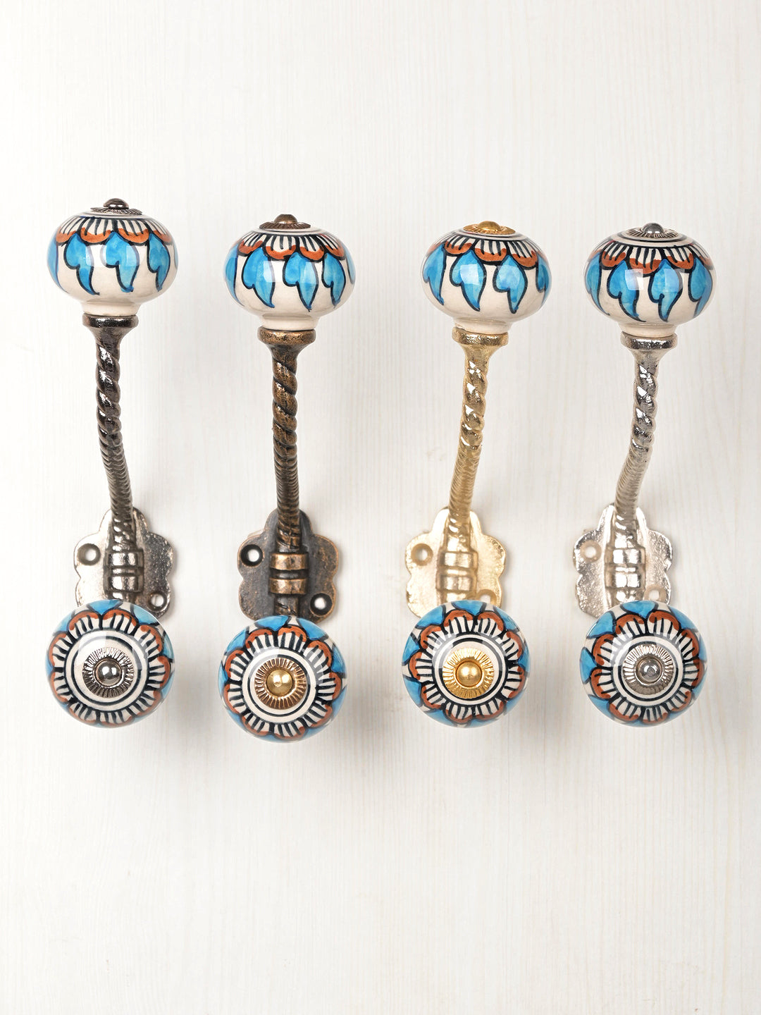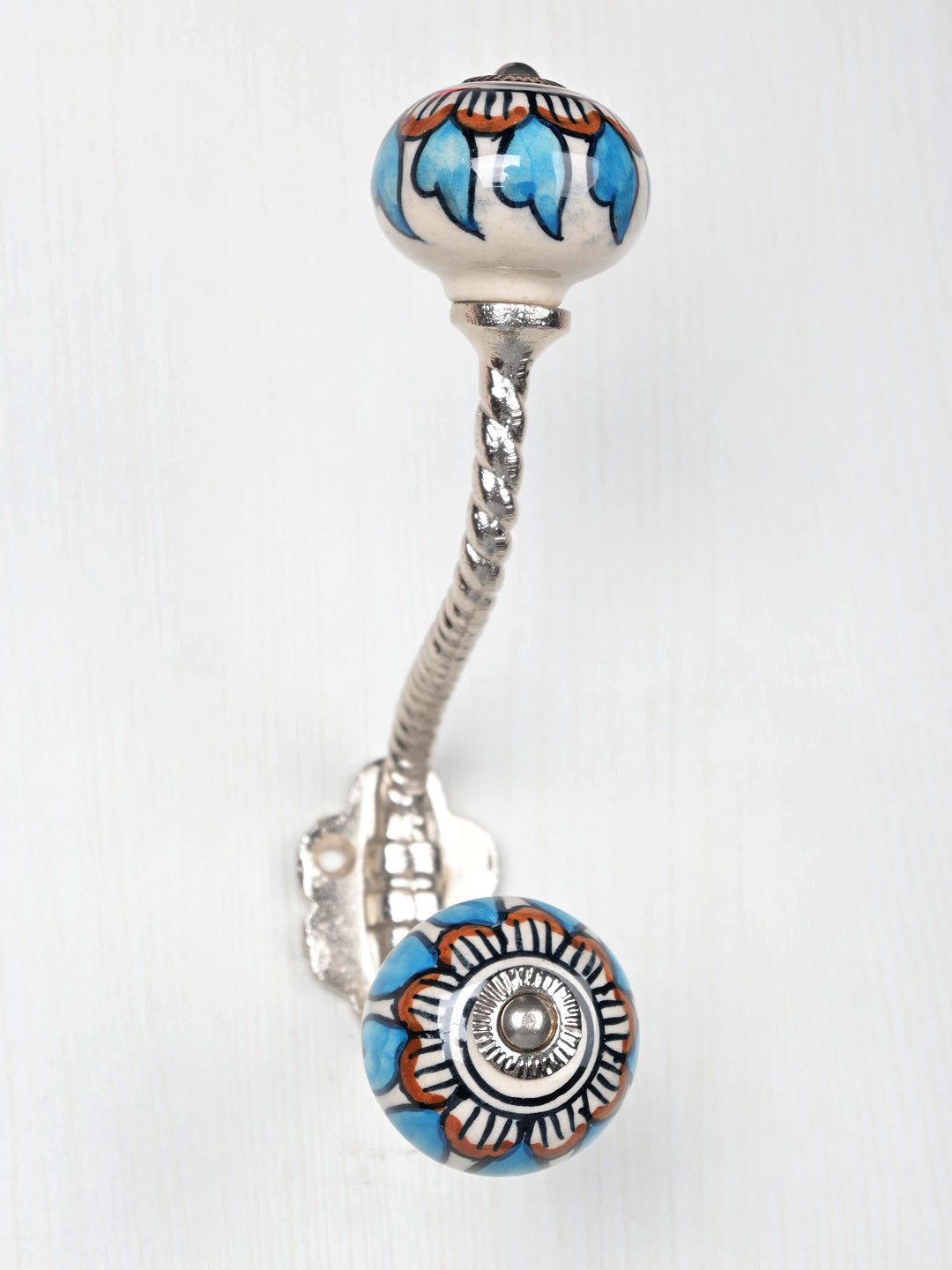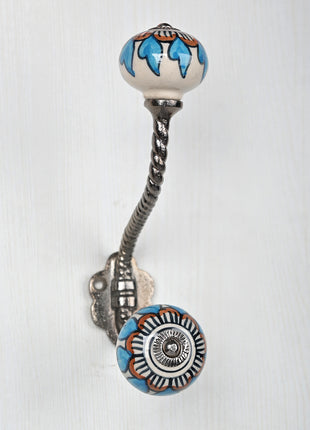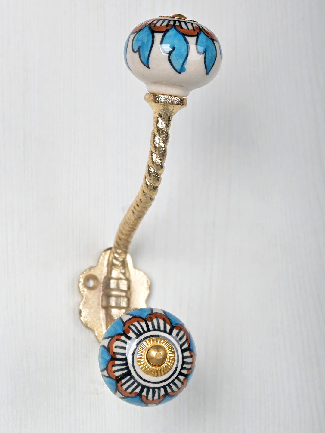 Turquoise and Brown Ceramic Cabinet Knob With Metal Wall Hange