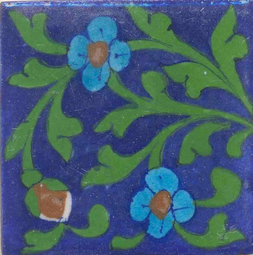 Turquoise and Brown Flower Green leaf with Blue Base Tile