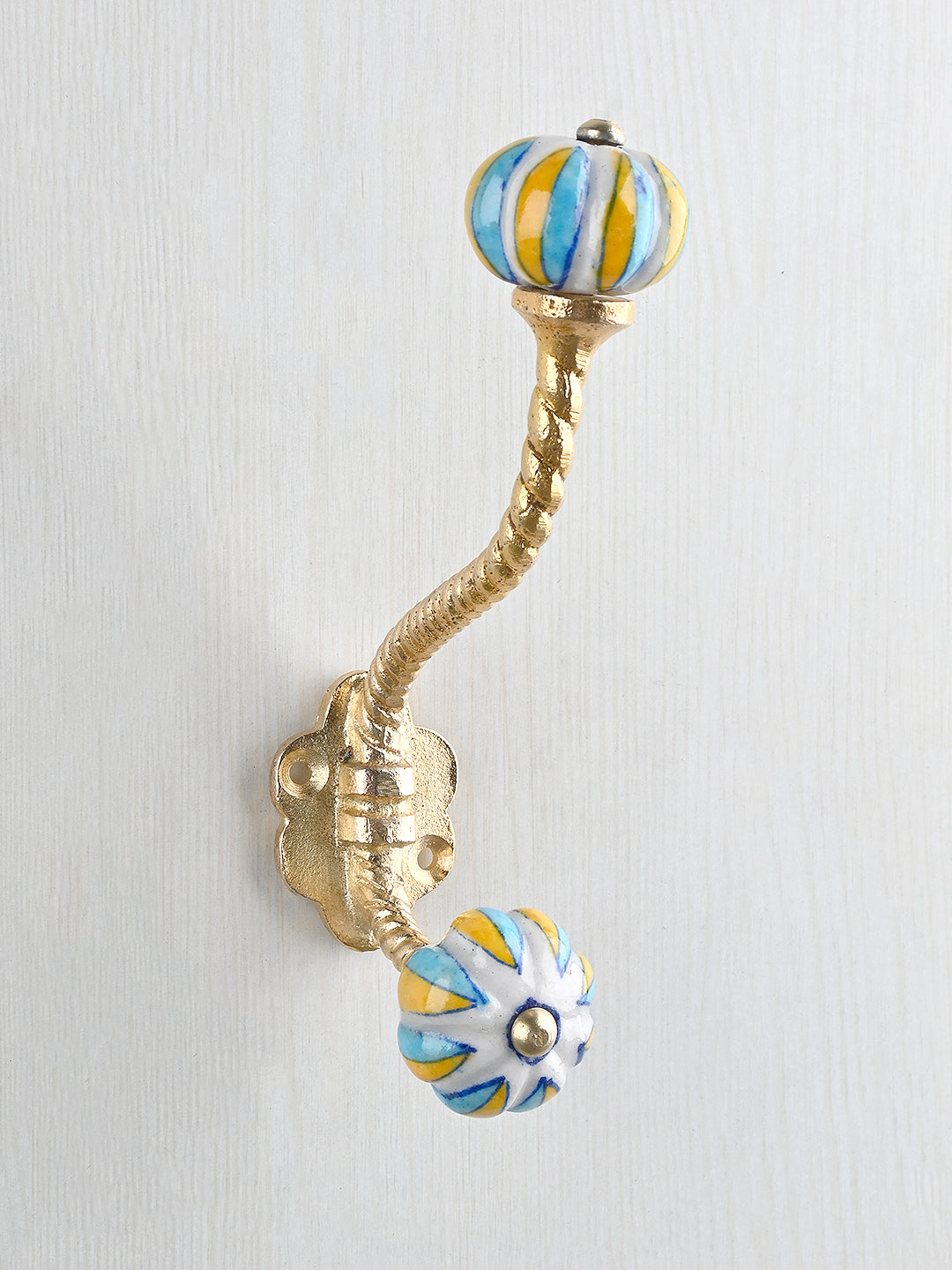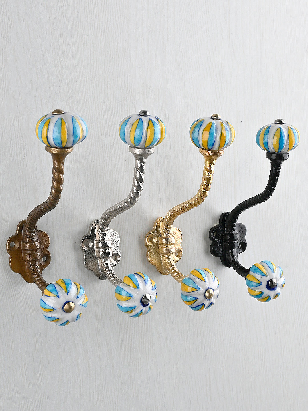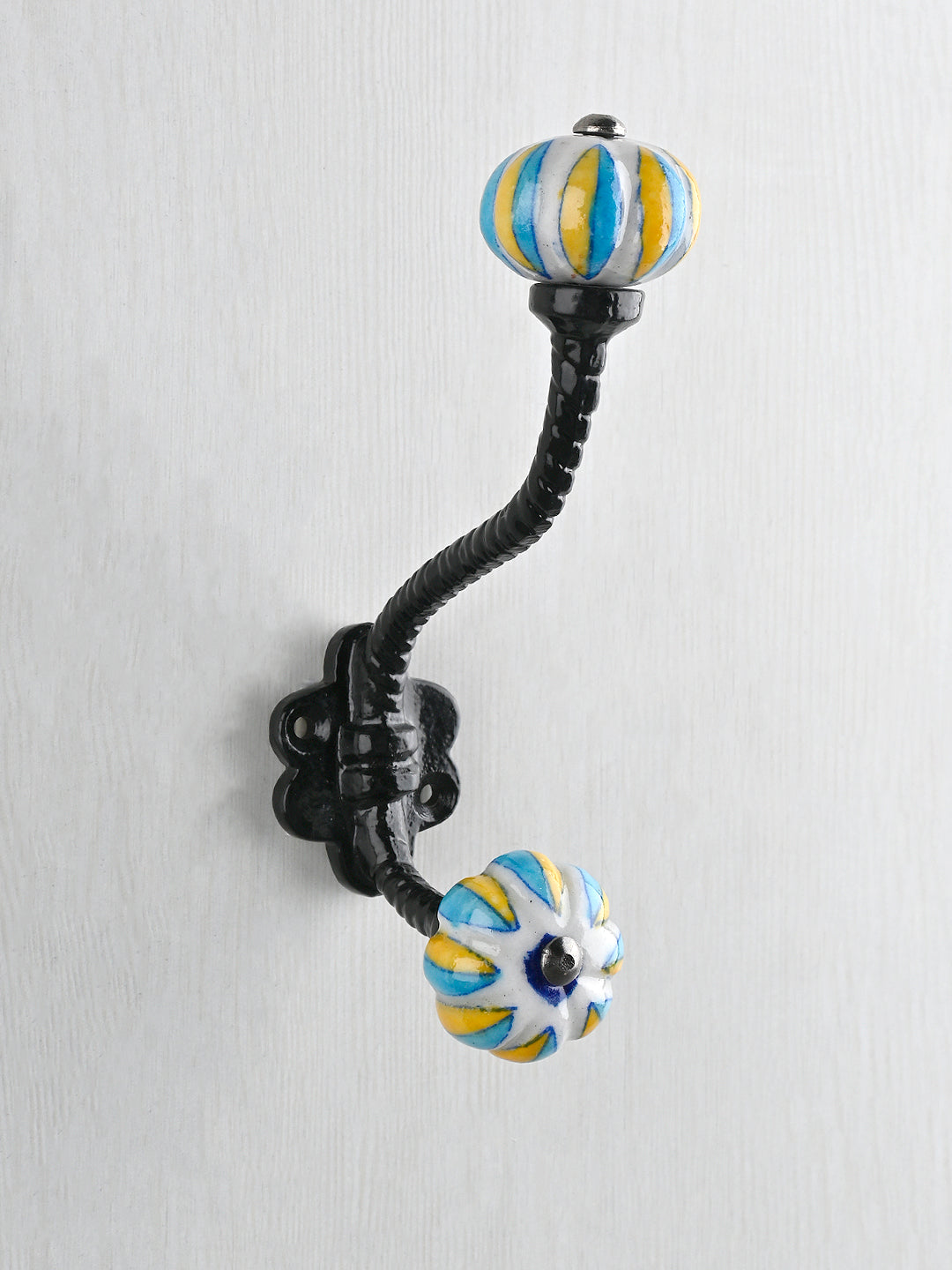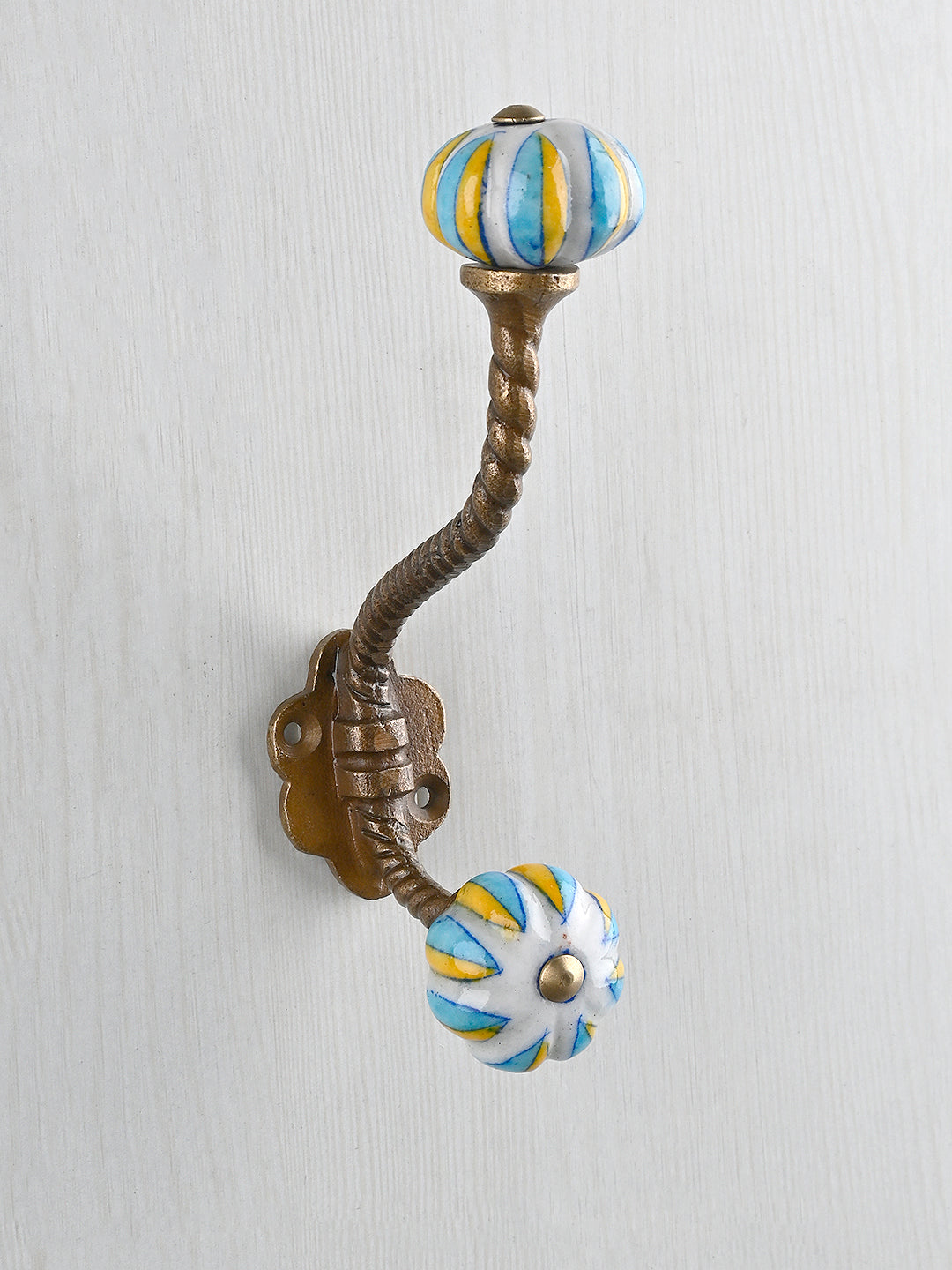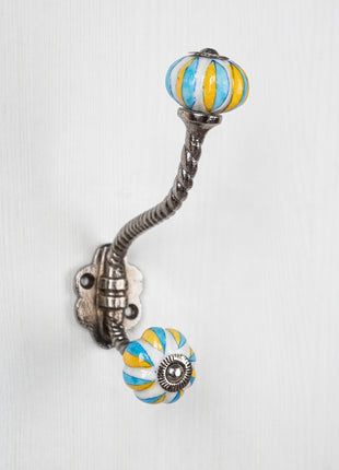 Turquoise and Yellow Color Knob With Metal Wall Hanger