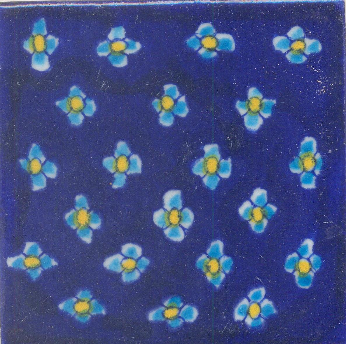 Turquoise and Yellow Flowers with Blue Base Tile