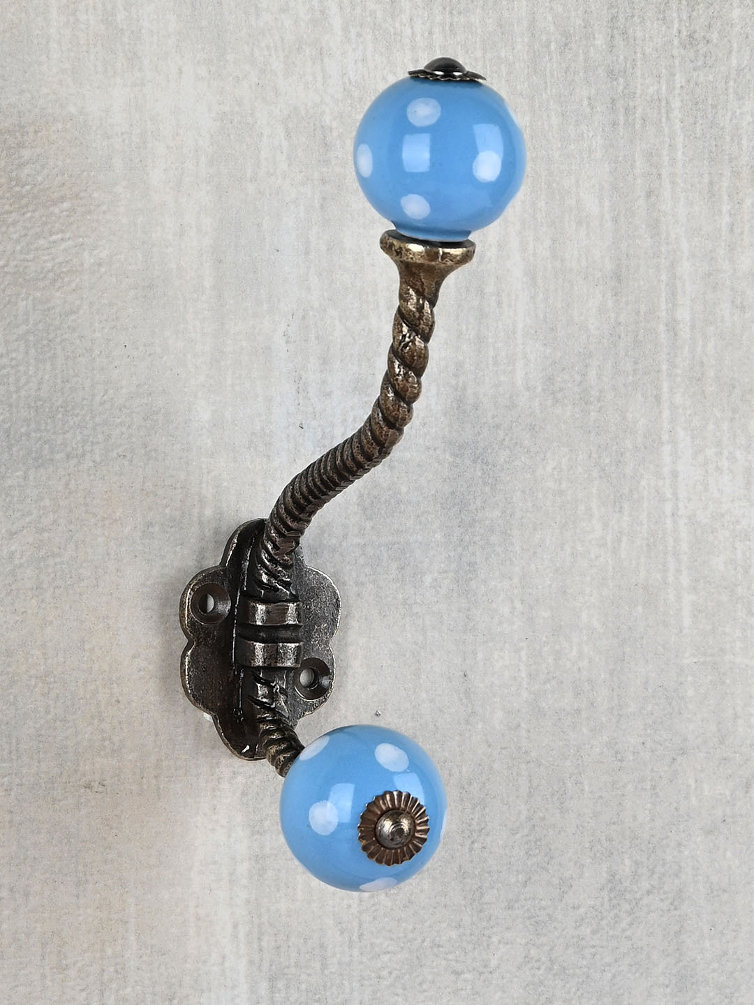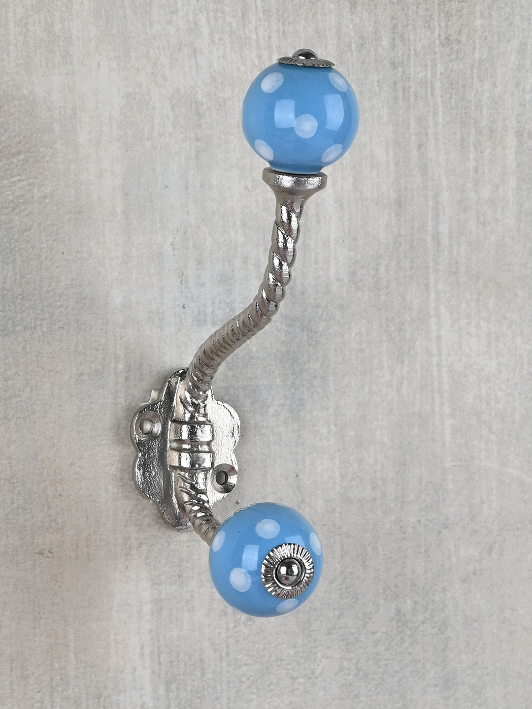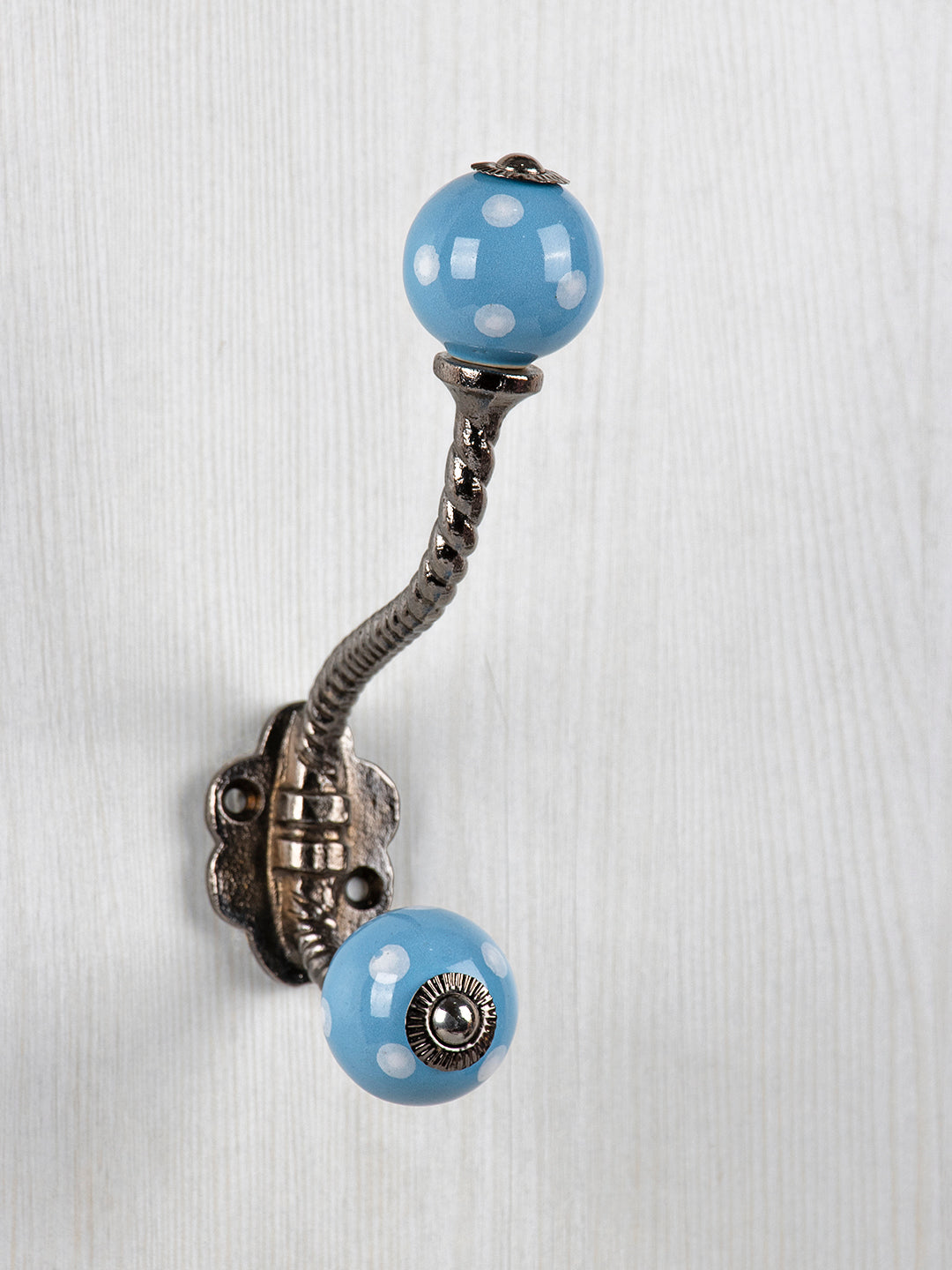 Turquoise Cabinet Knob With White Polka Dots Metal Wall Hanger