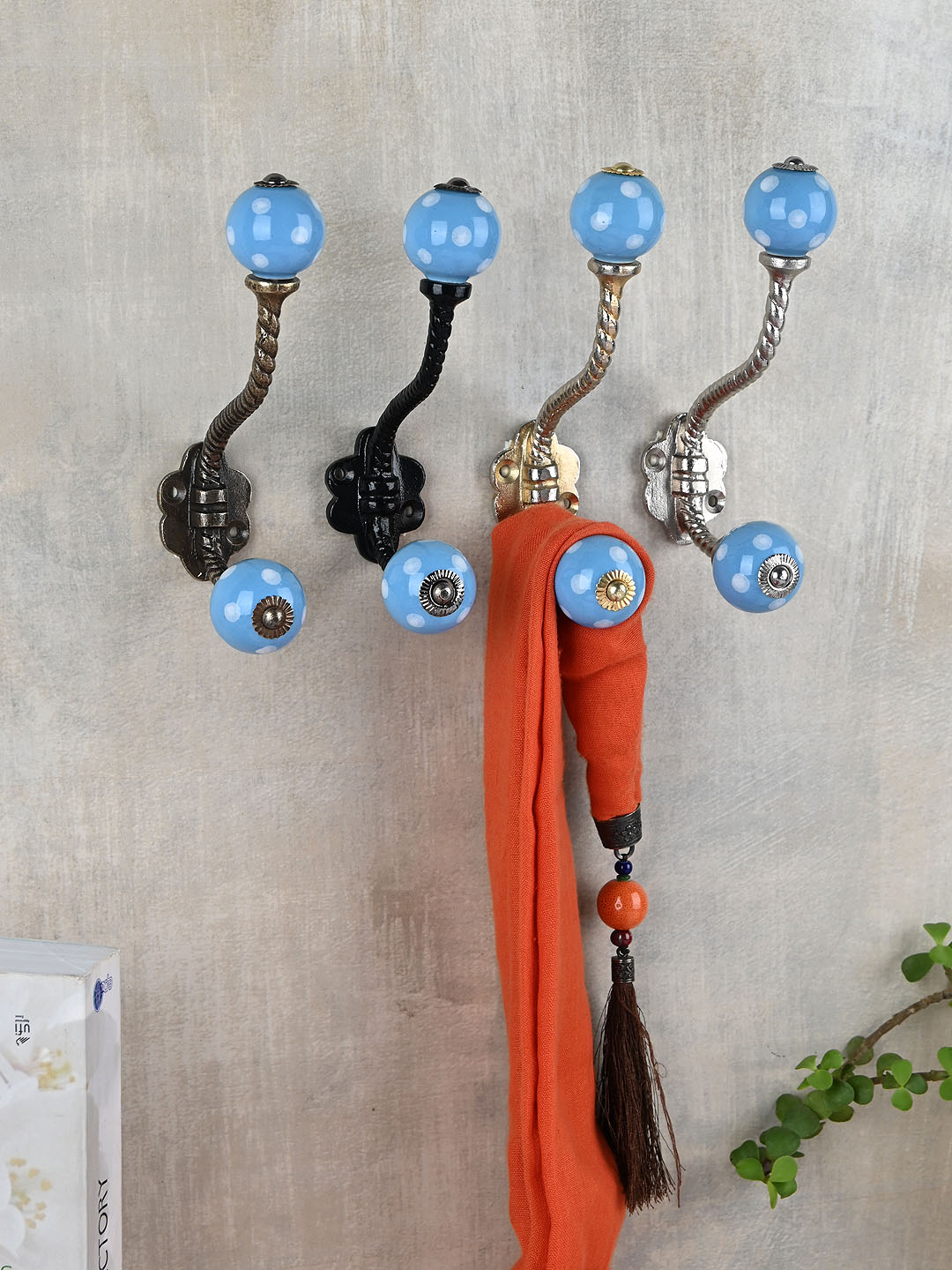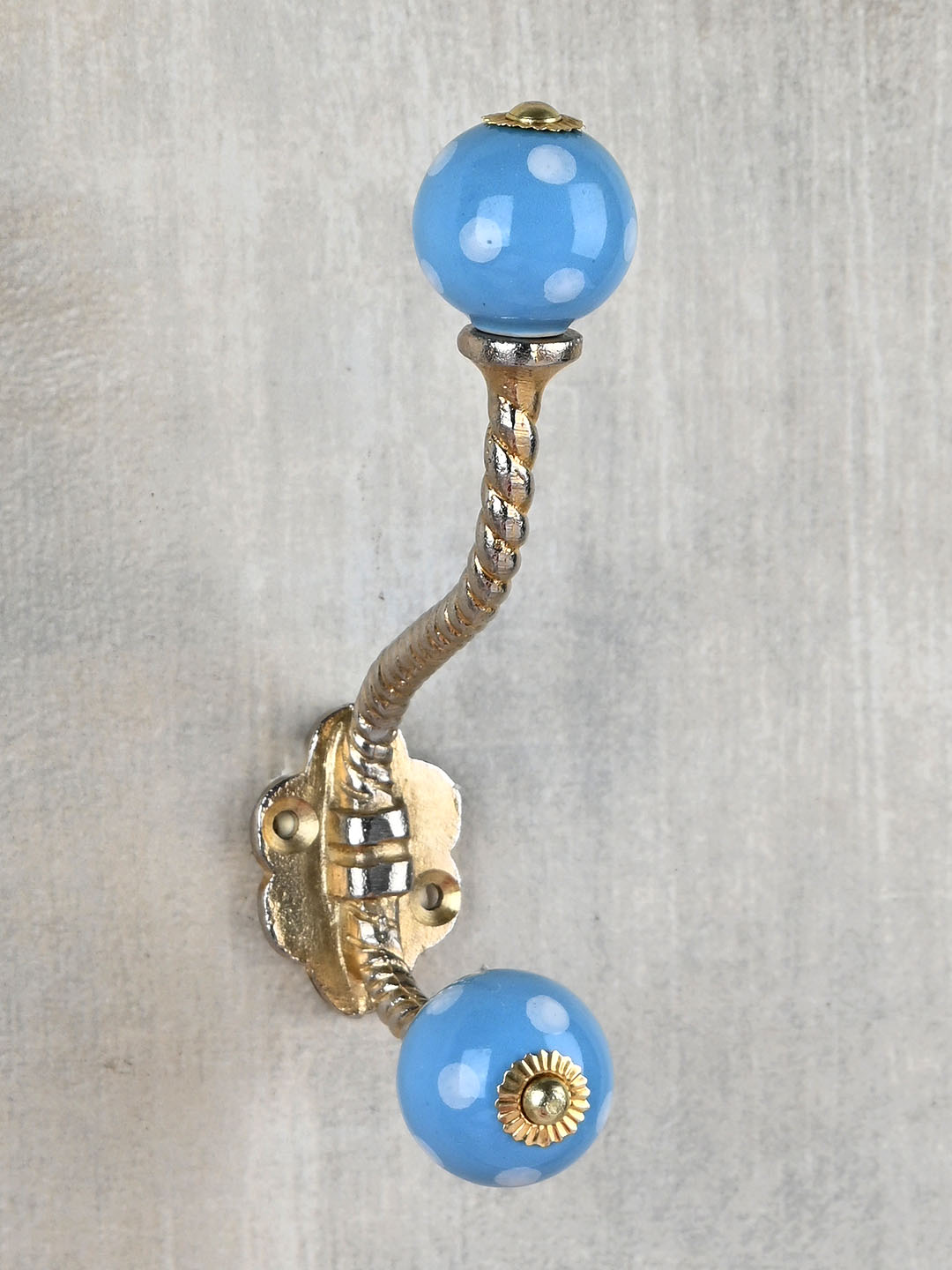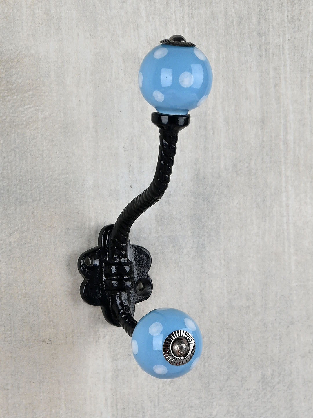 Turquoise Cabinet Knob With White Polka Dots Metal Wall Hanger