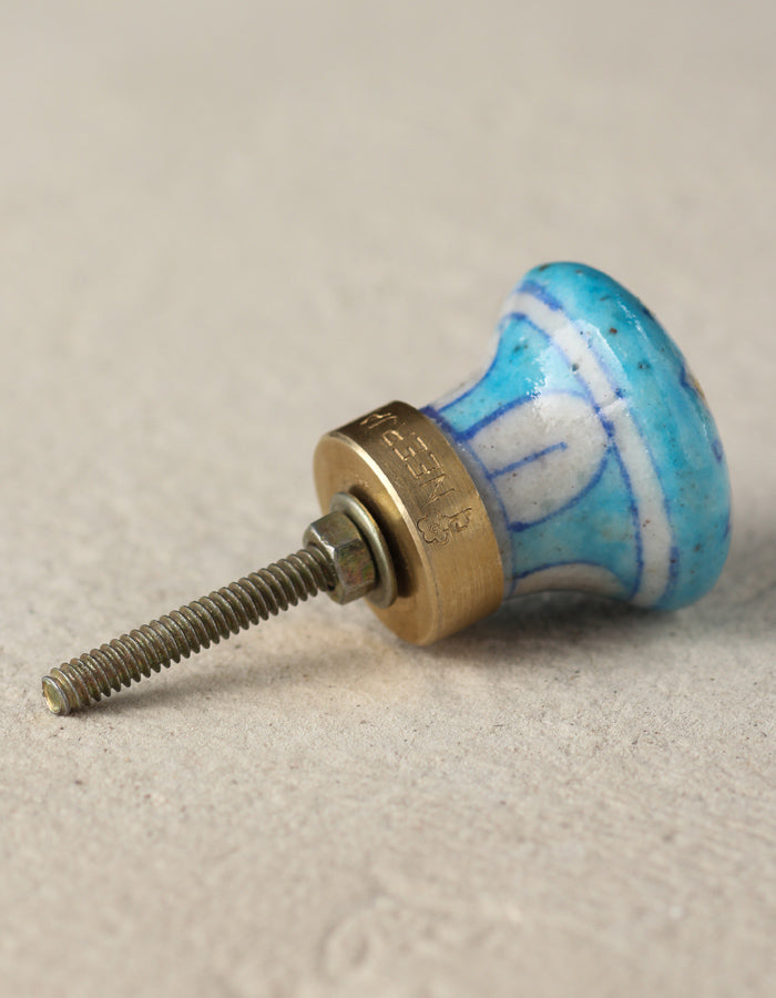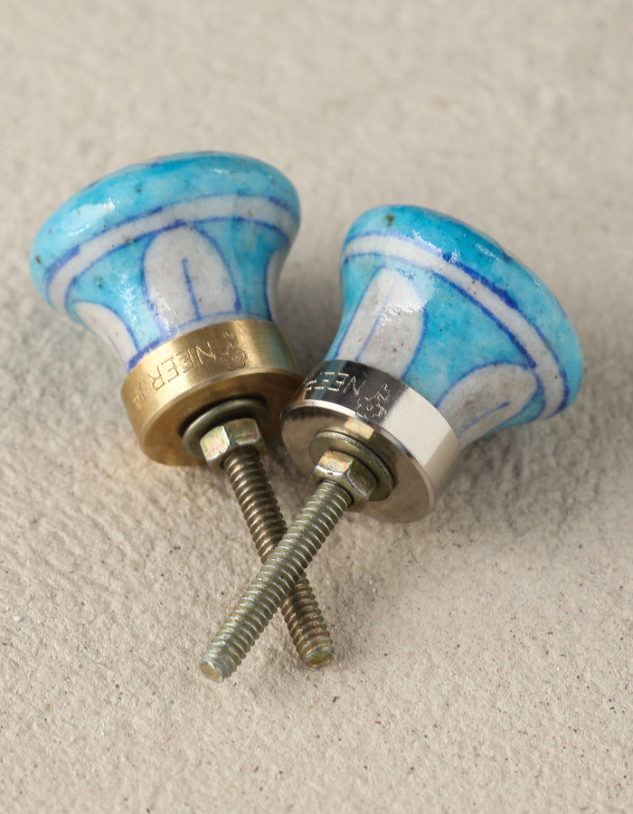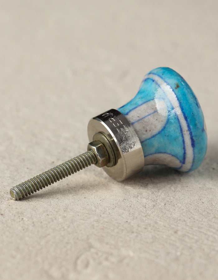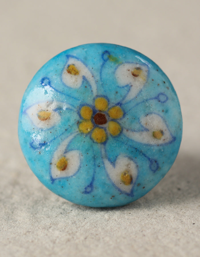 Turquoise Ceramic Blue Pottery Dresser Cabinet Knob with White Flower