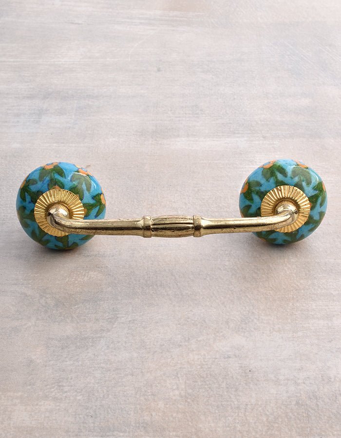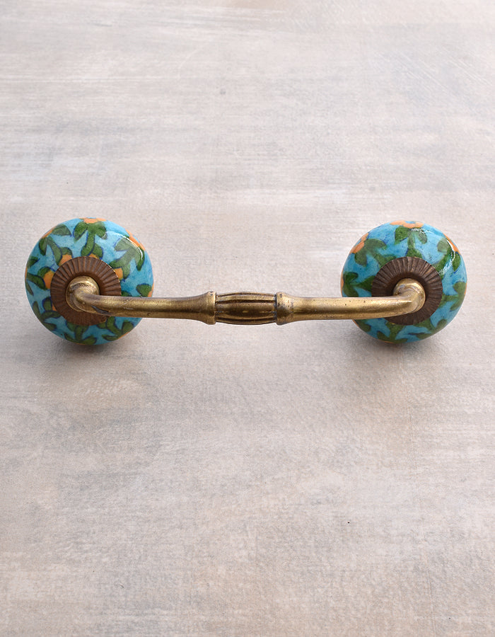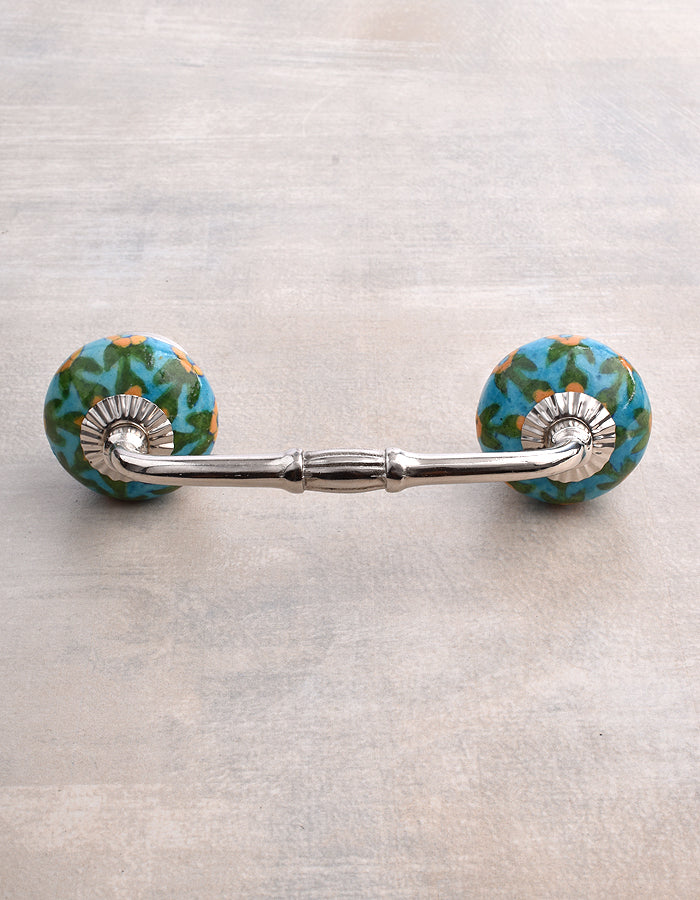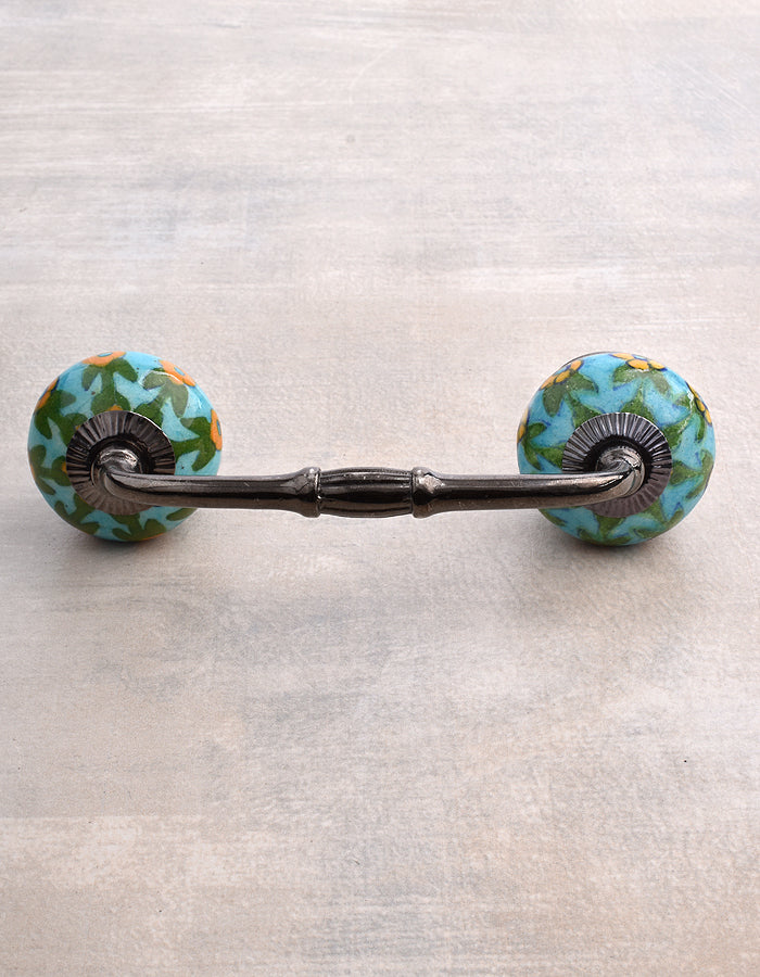 Turquoise Floral Print Ceramic Drawer Cabinet Pull