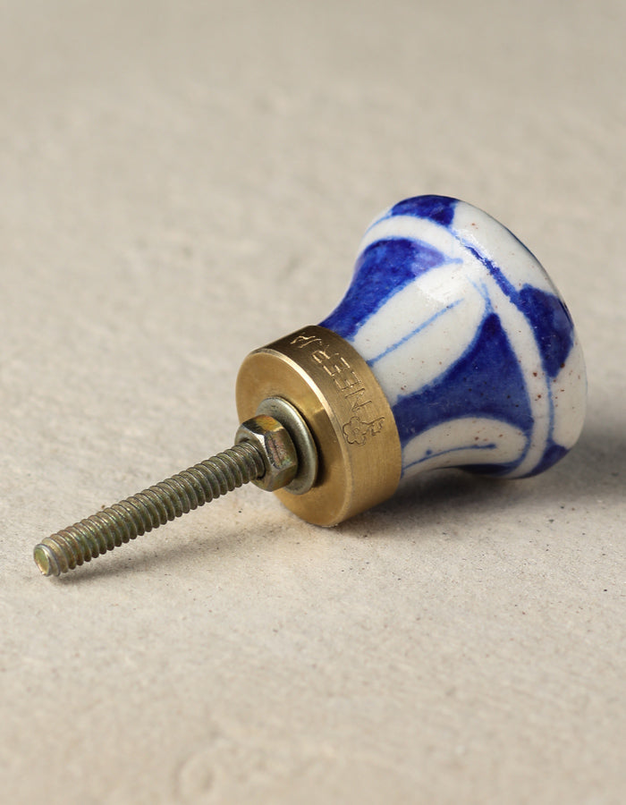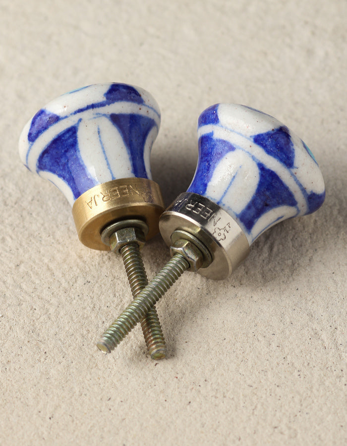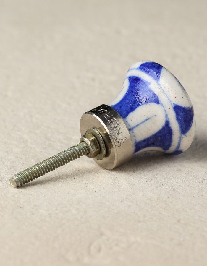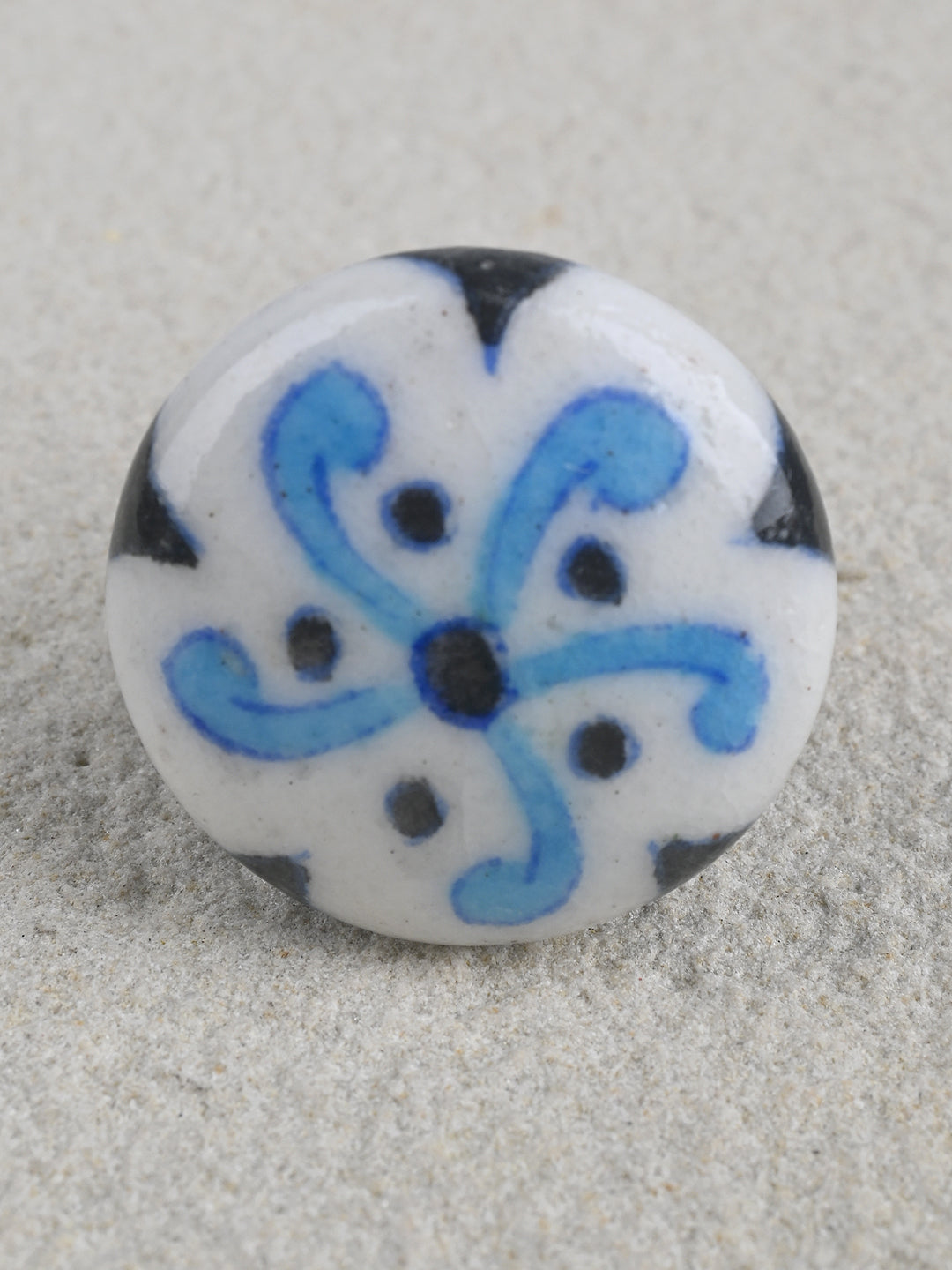 Handmade White Ceramic Door Knob With Turquoise And Blue Design