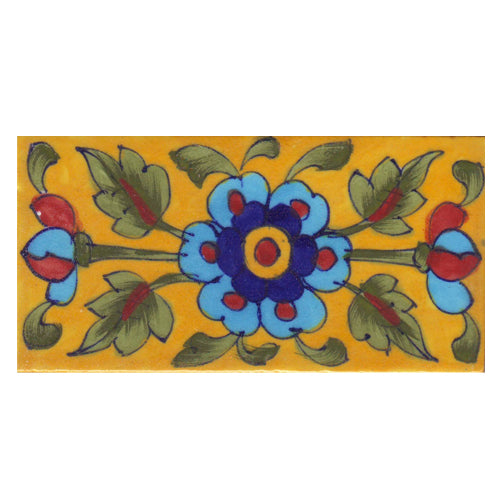 Turquoise,Blue,Brown,Yellow Flower and Green Shading leaf with Yellow Base Tile2