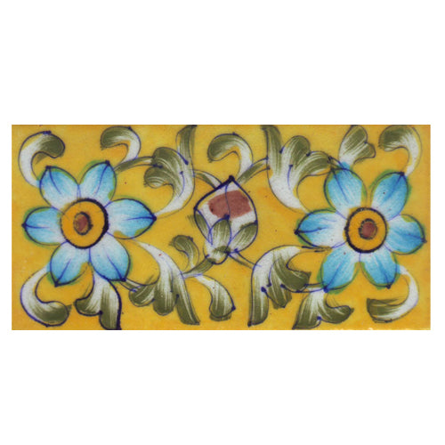 Turquoise,Brown and Yellow Flowers and Green Shading leaf with Yellow Base Tile6