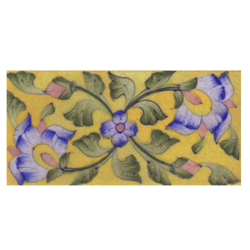 Two Blue Shading Flowers Design on Yellow Base Tile