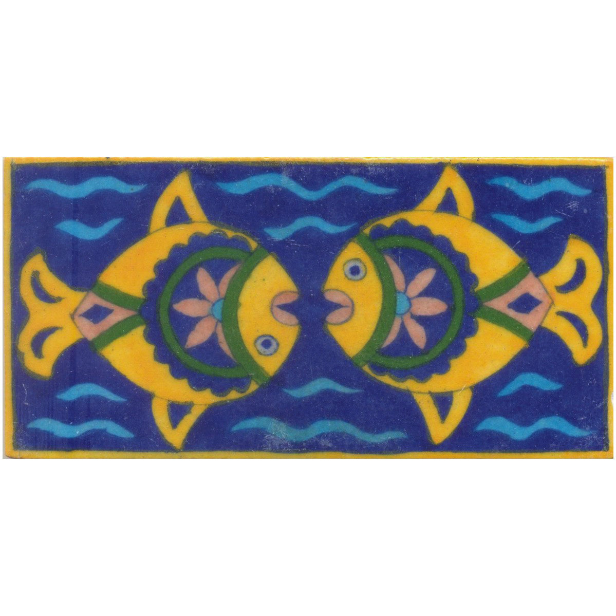 Two Fish yellow,Brown,Blue and Green with Blue Base Tile