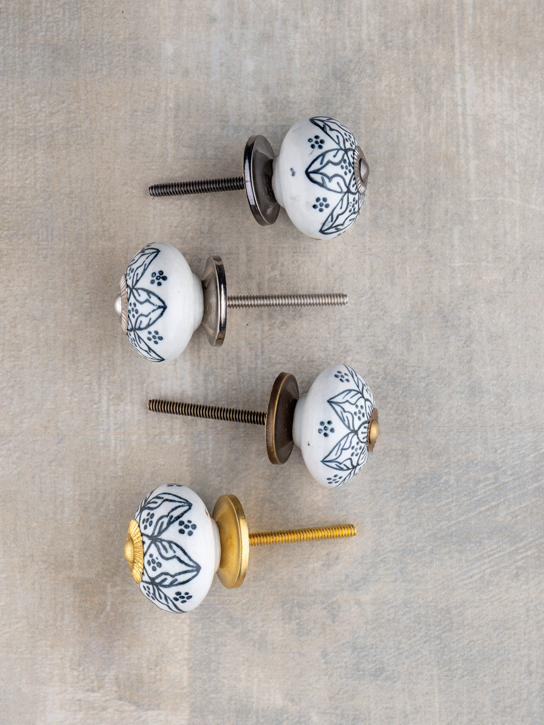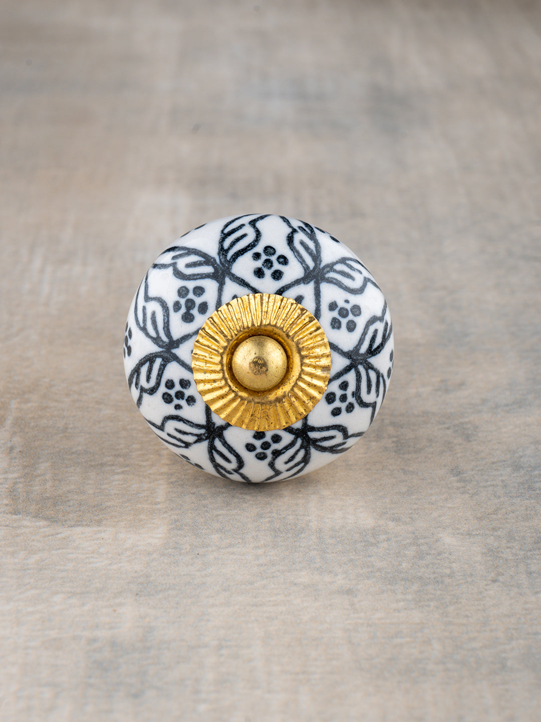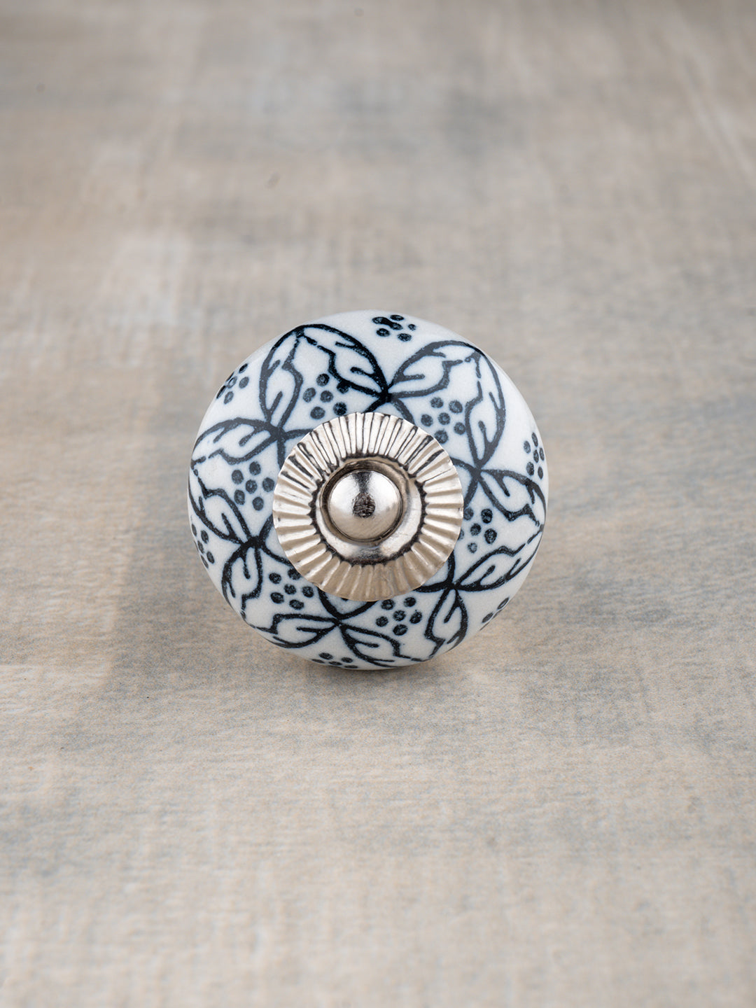 Unique Black Floral Design On White Ceramic Drawer Cabinet Knob