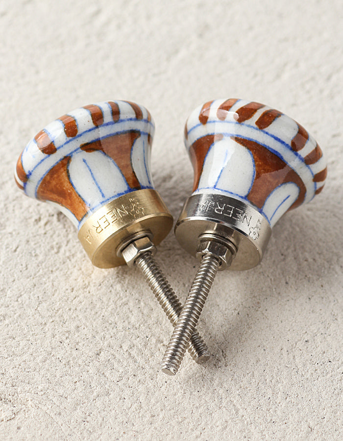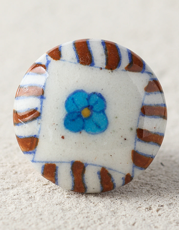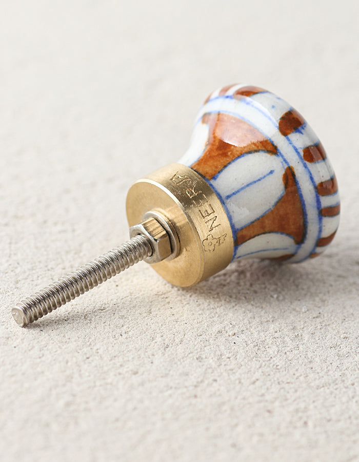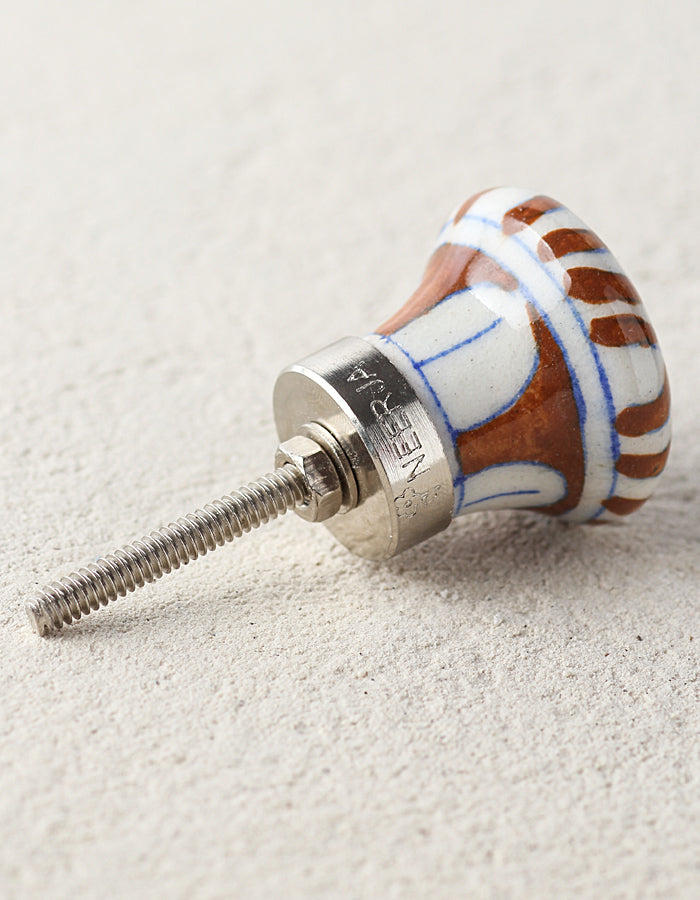 Unique Brown Stripes On White Ceramic Blue Pottery Door Knob