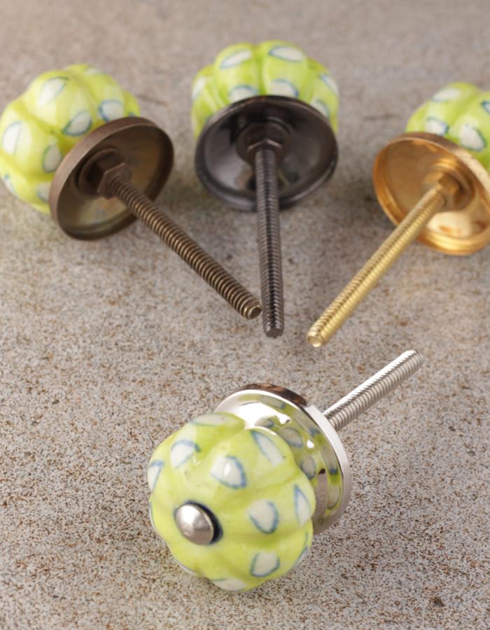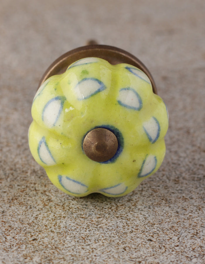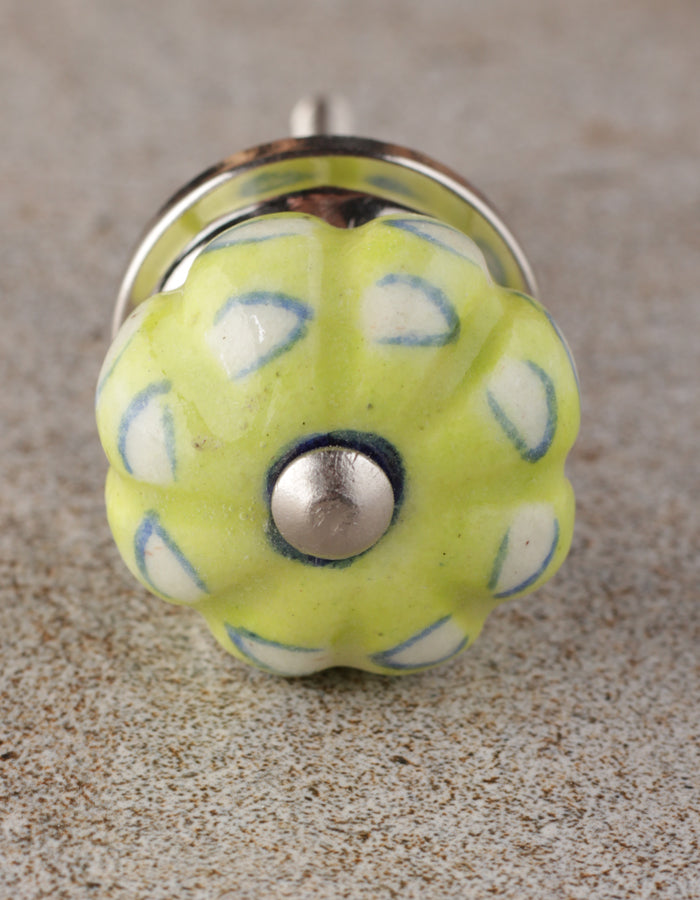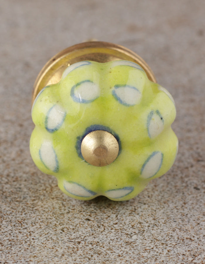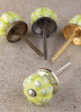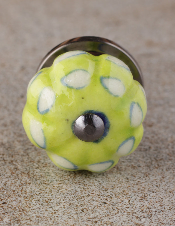 Unique Lime Green Melon Shaped Drawer Cabinet Knob With White Print