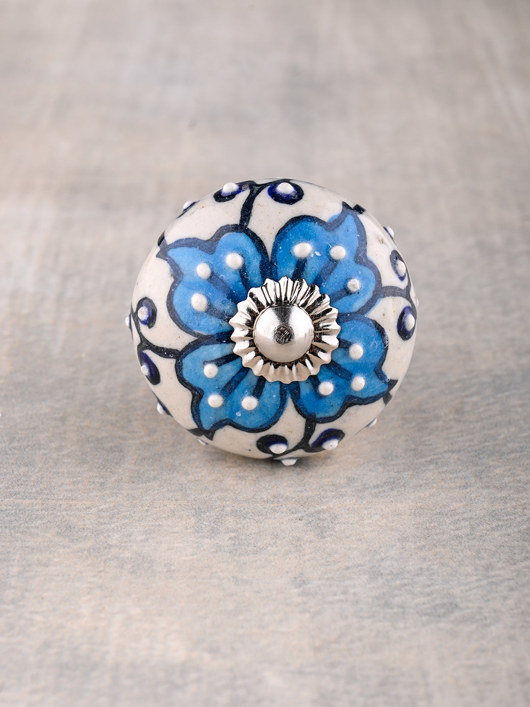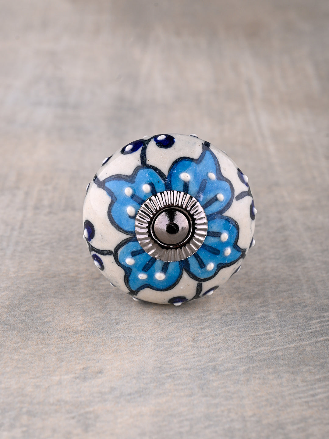 Unique Turquoise Flower On White Ceramic Dresser Cabinet Knob