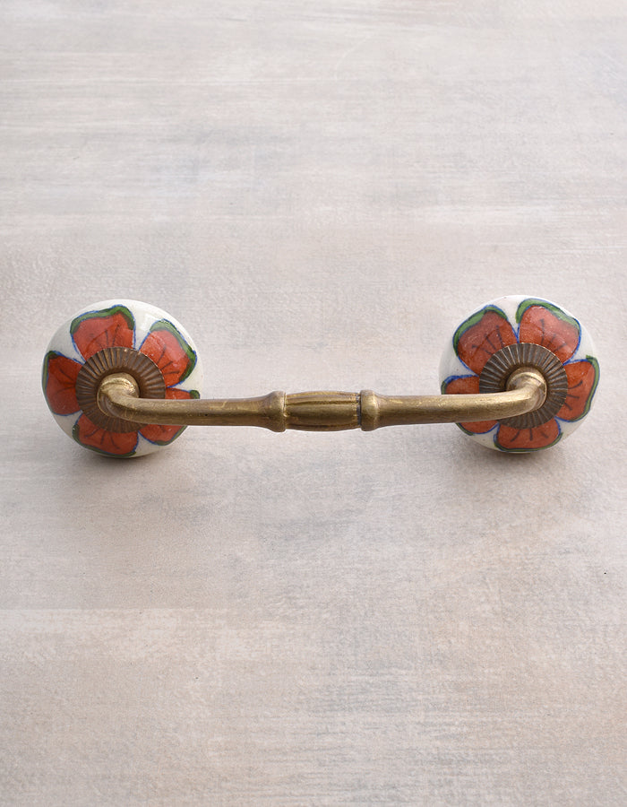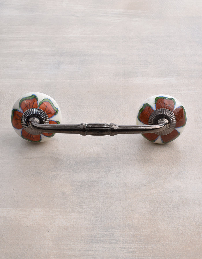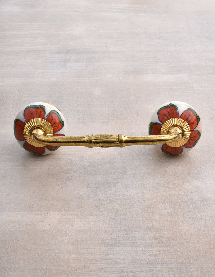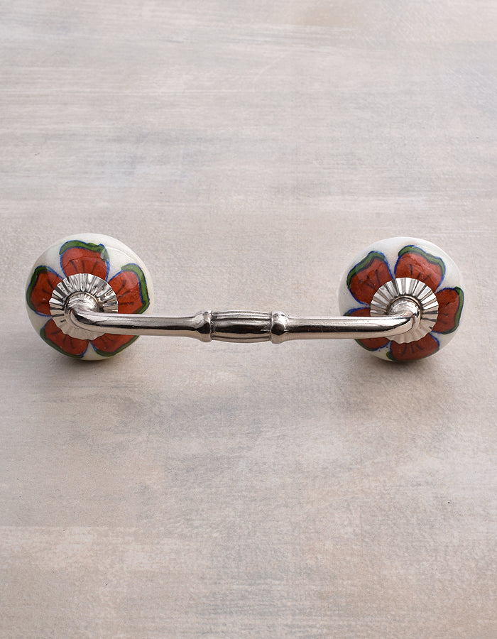 Unique White Base Ceramic Wardrobe Pull With Red Flower