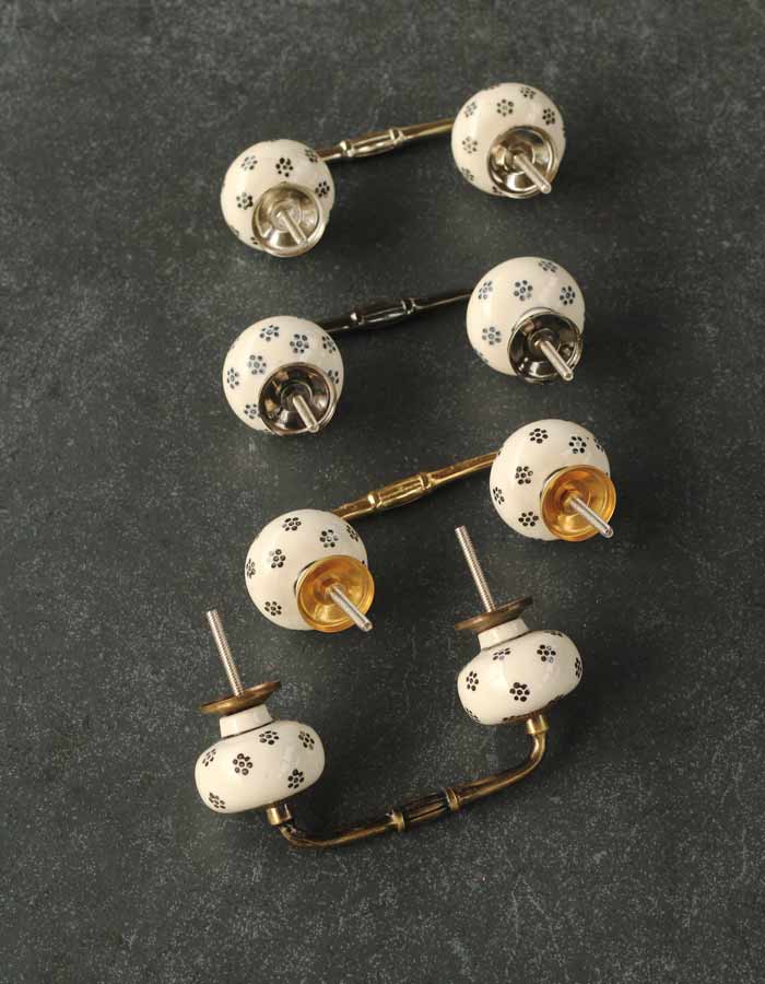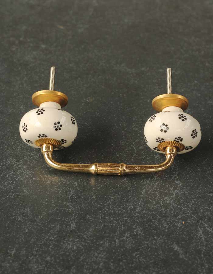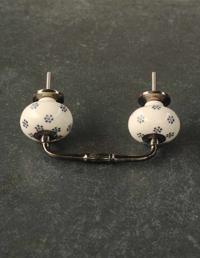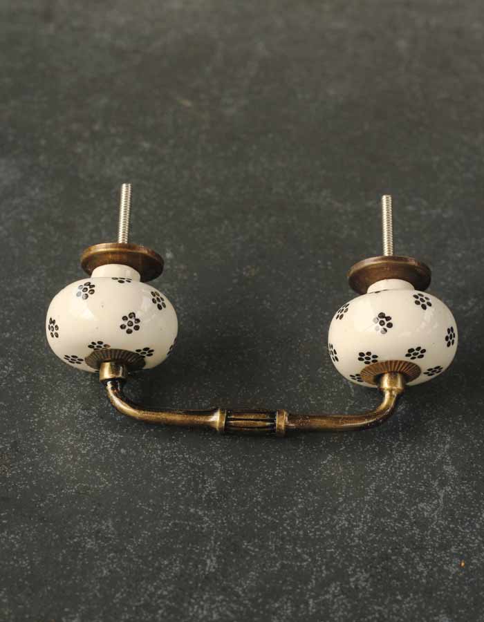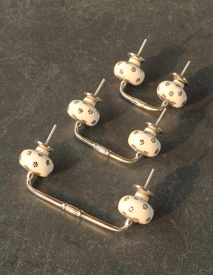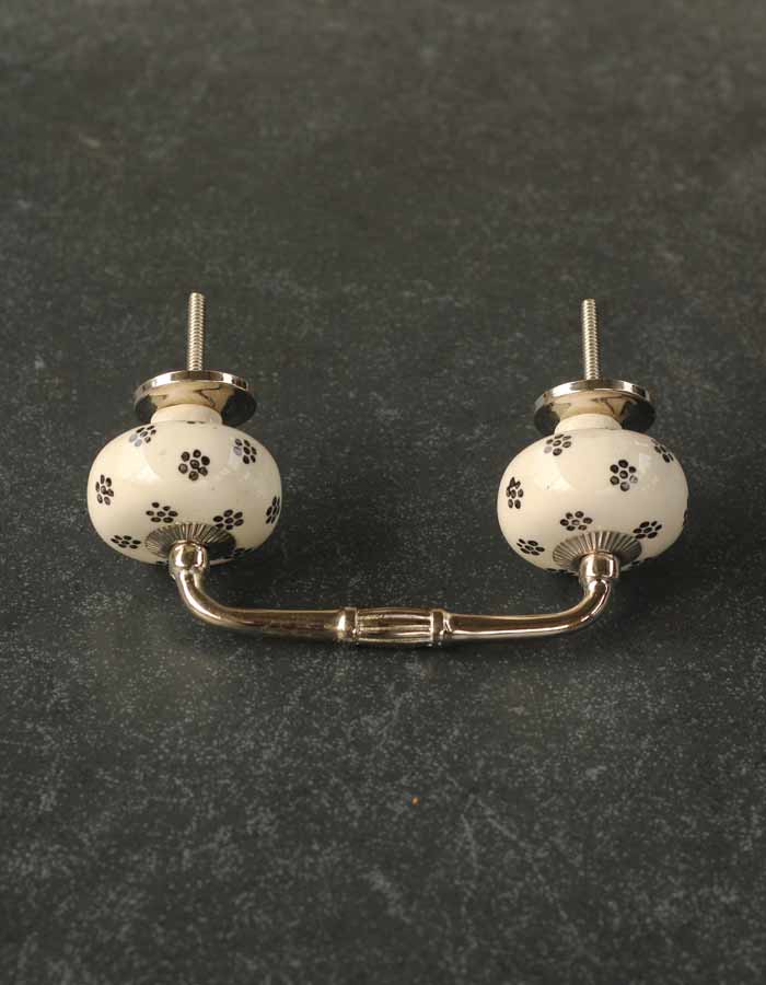 Unique White Royal Ceramic Cabinet Pull With Small Black Flowers