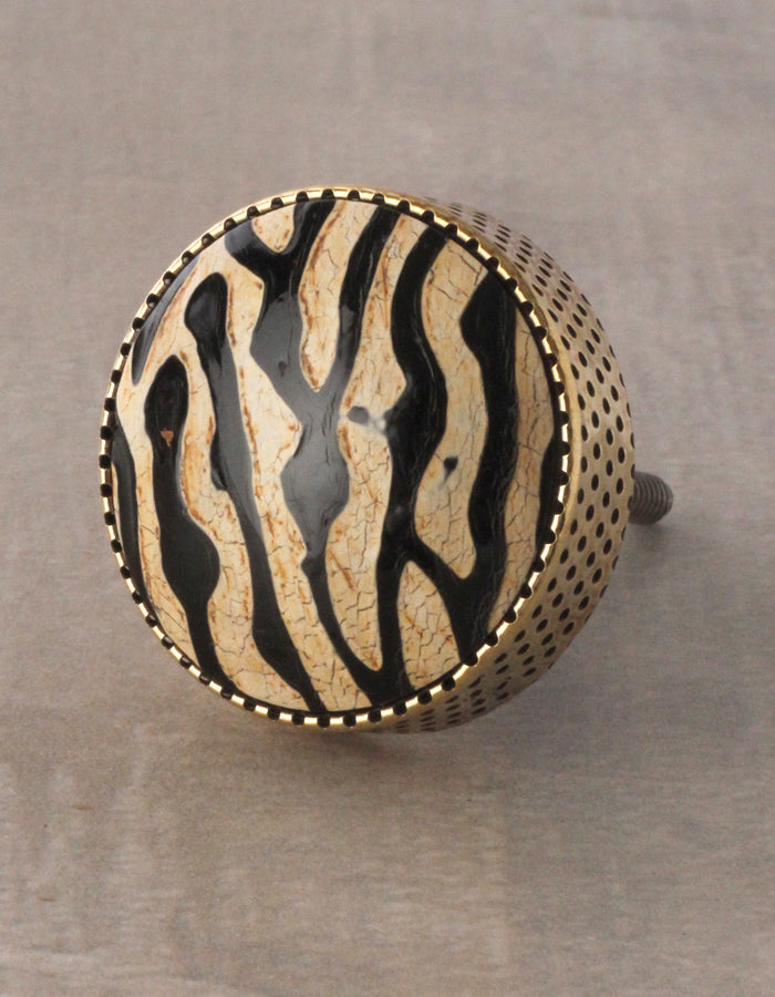 Vintage Black And Golden Leopard Print Wooden Door Knob