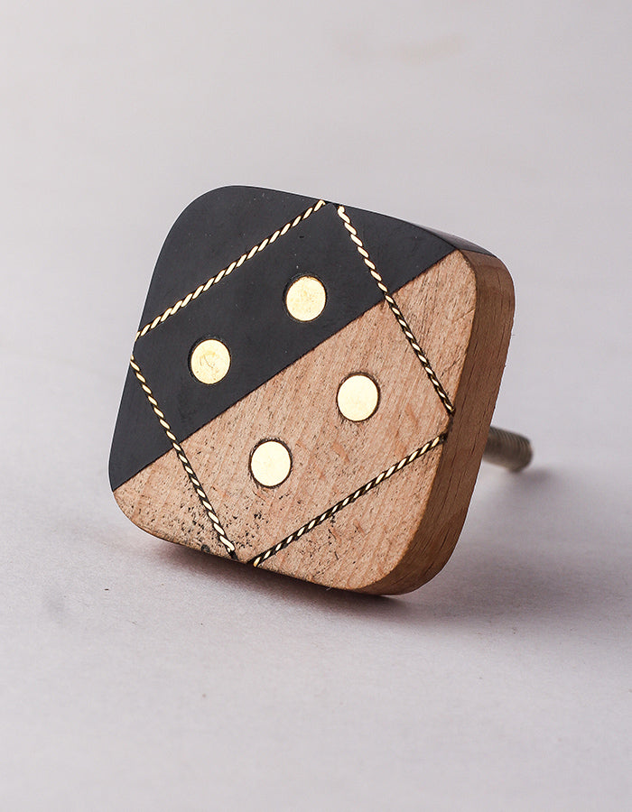 Vintage Black And Wooden Square Shaped Drawer Cabinet Knob