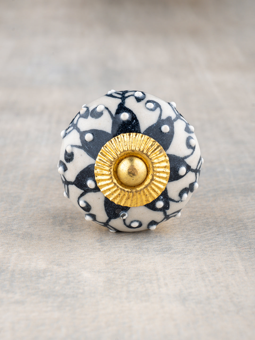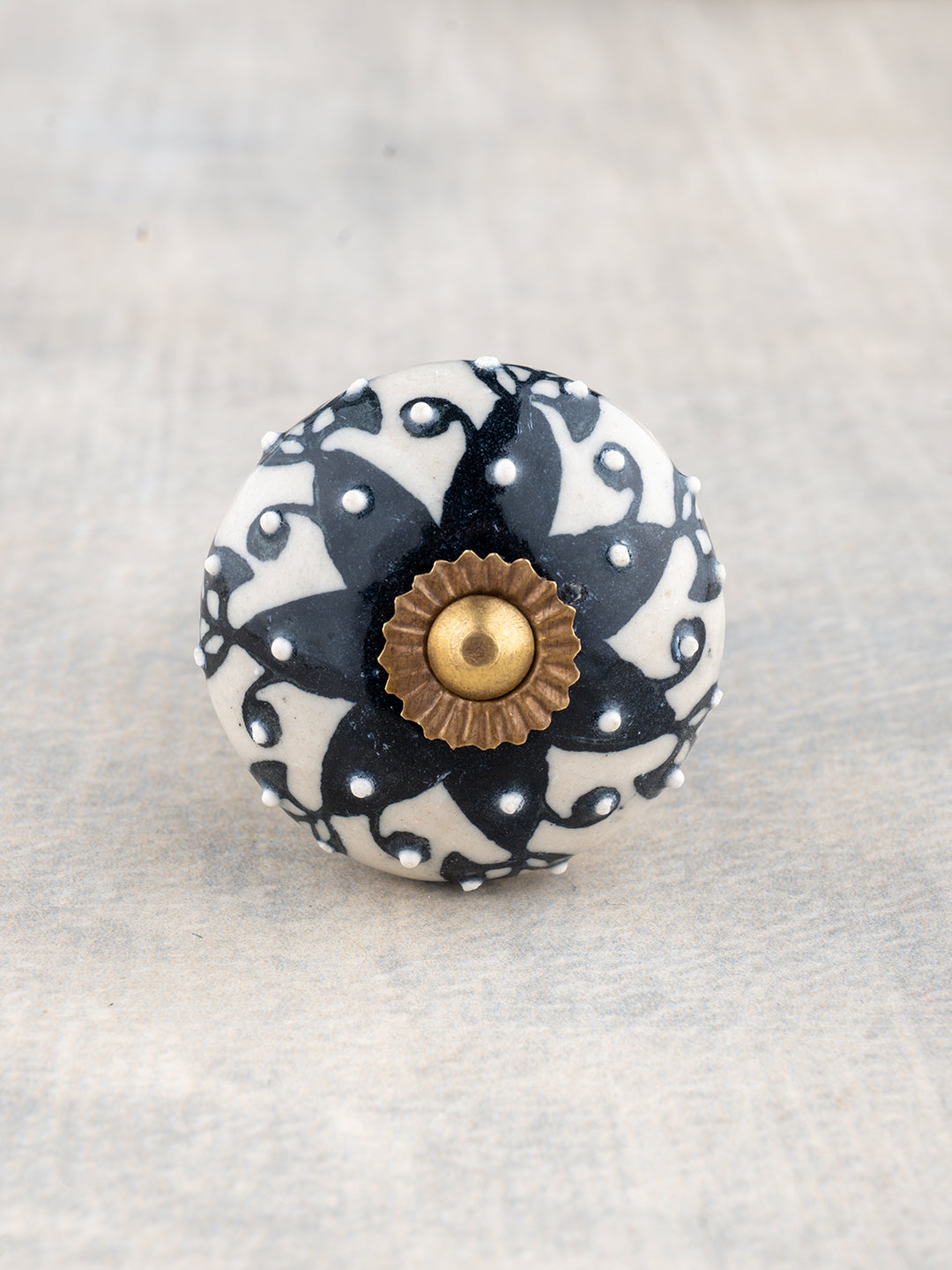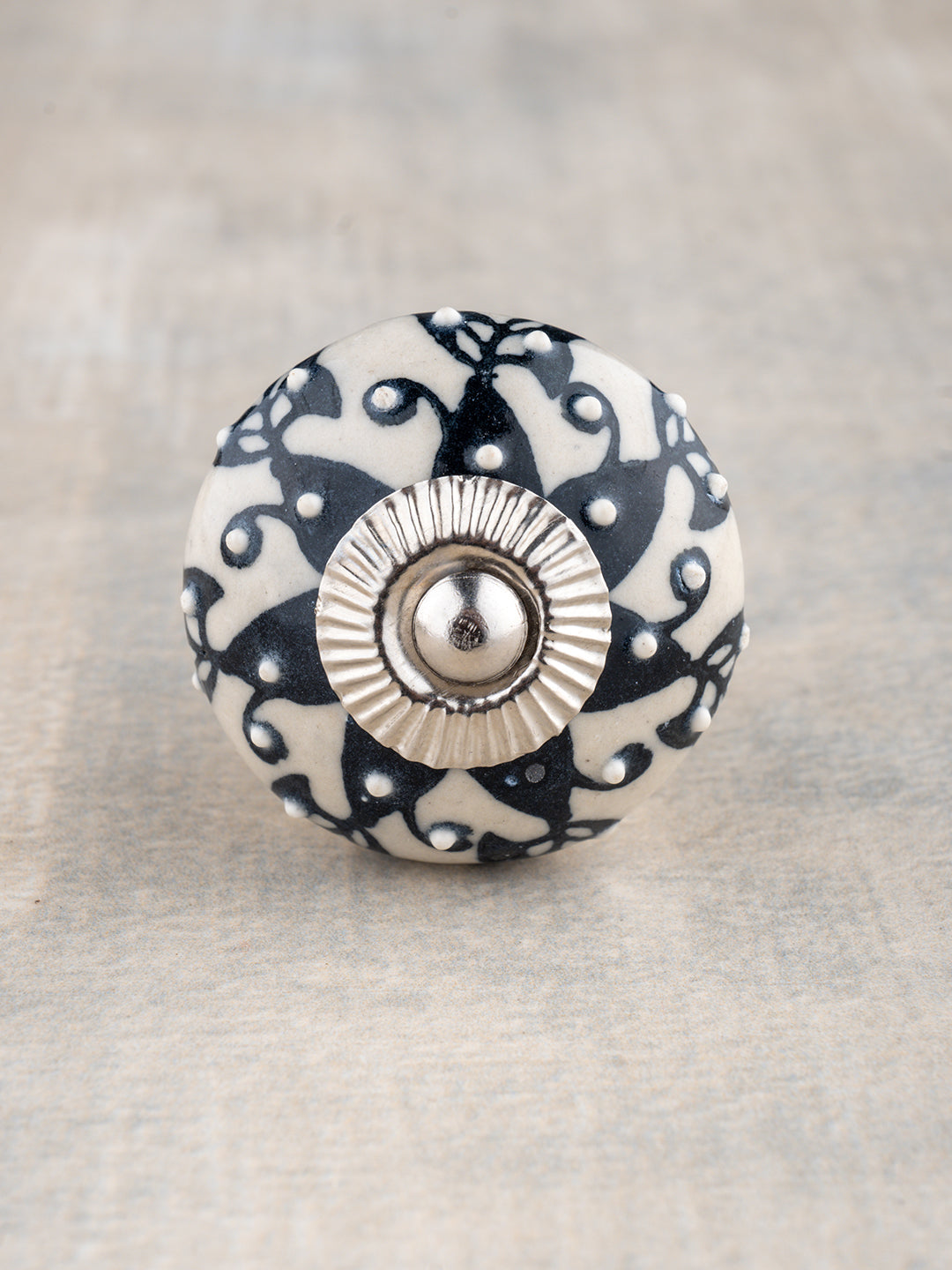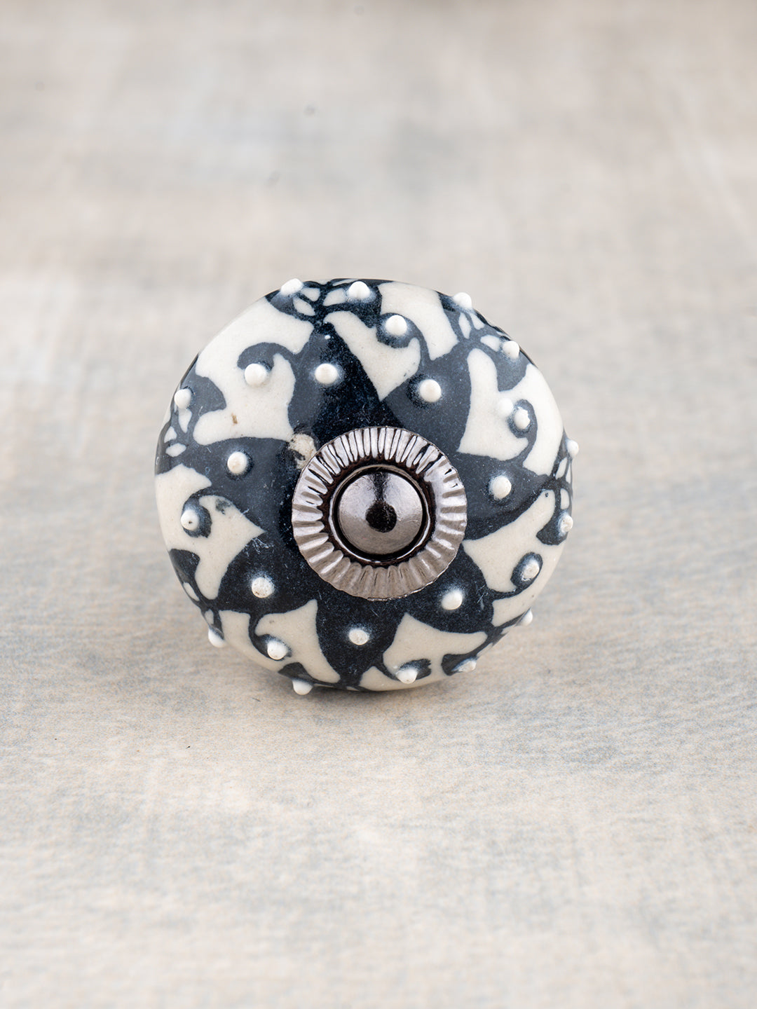 Vintage Black Floral Print On White Ceramic Wardrobe Cabinet Knob
