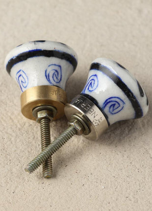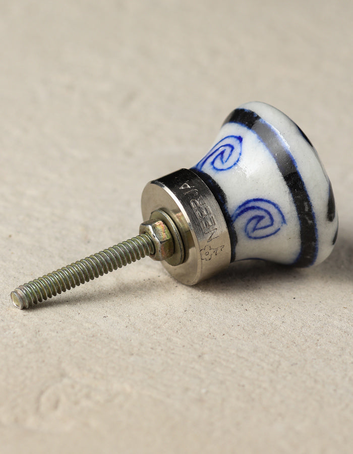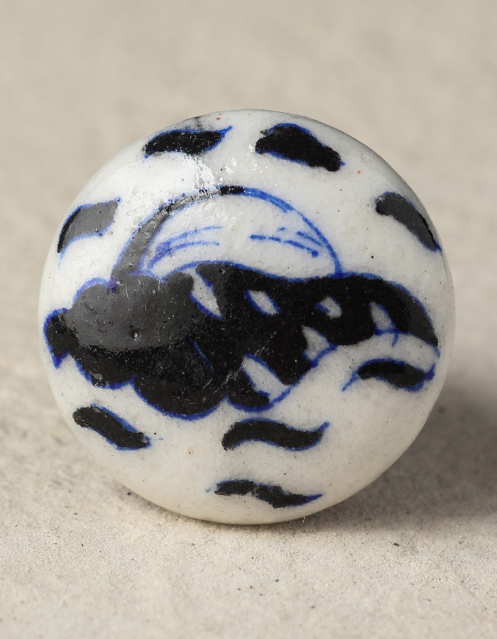 Vintage Black Shell Ceramic Blue Pottery Dresser Cabinet Knob