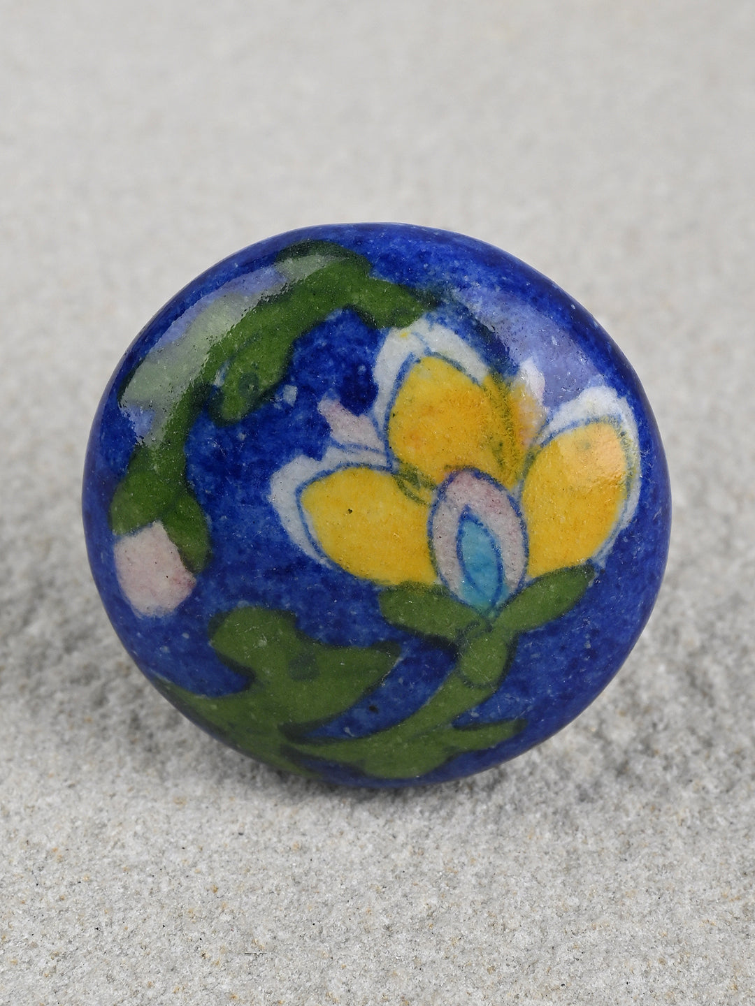 Vintage Blue Ceramic Drawer Knob with Yellow Flower