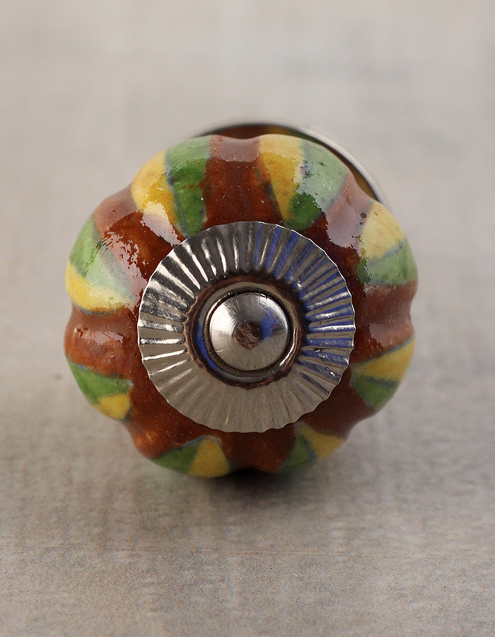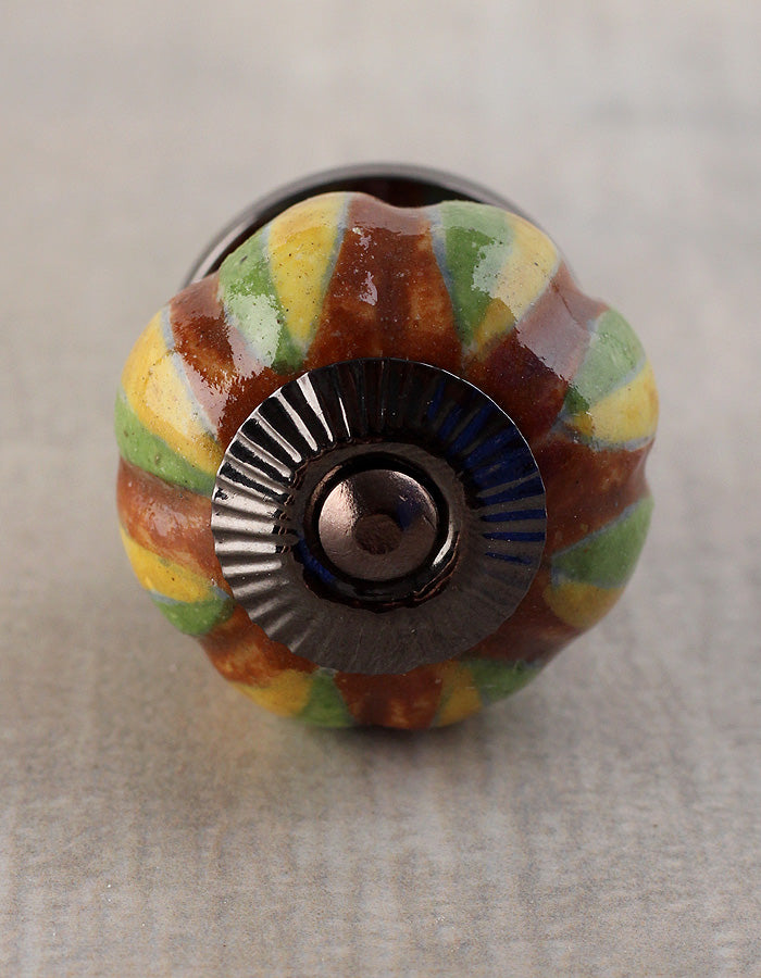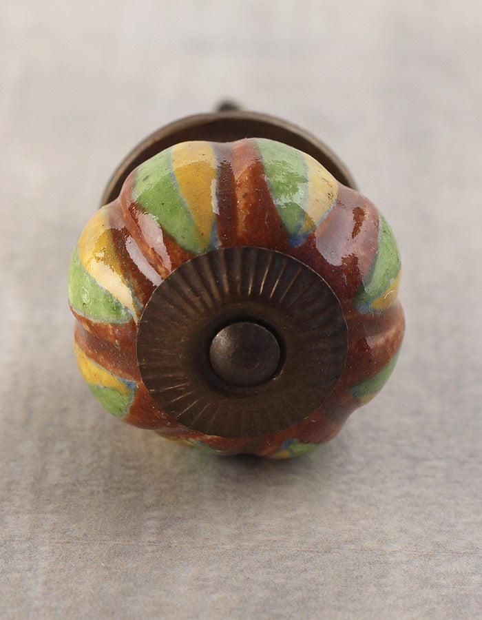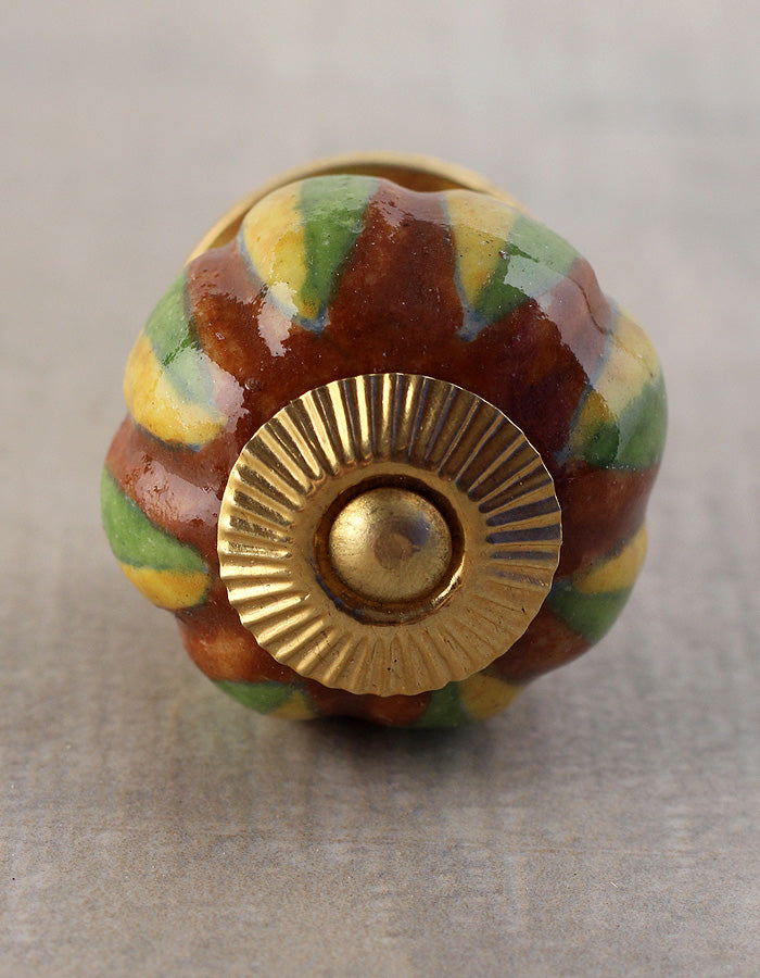 Vintage Brown Wardrobe Cabinet Knob With Yellow And Green Leaves is the perfect melon shaped pull for all your household requirements.