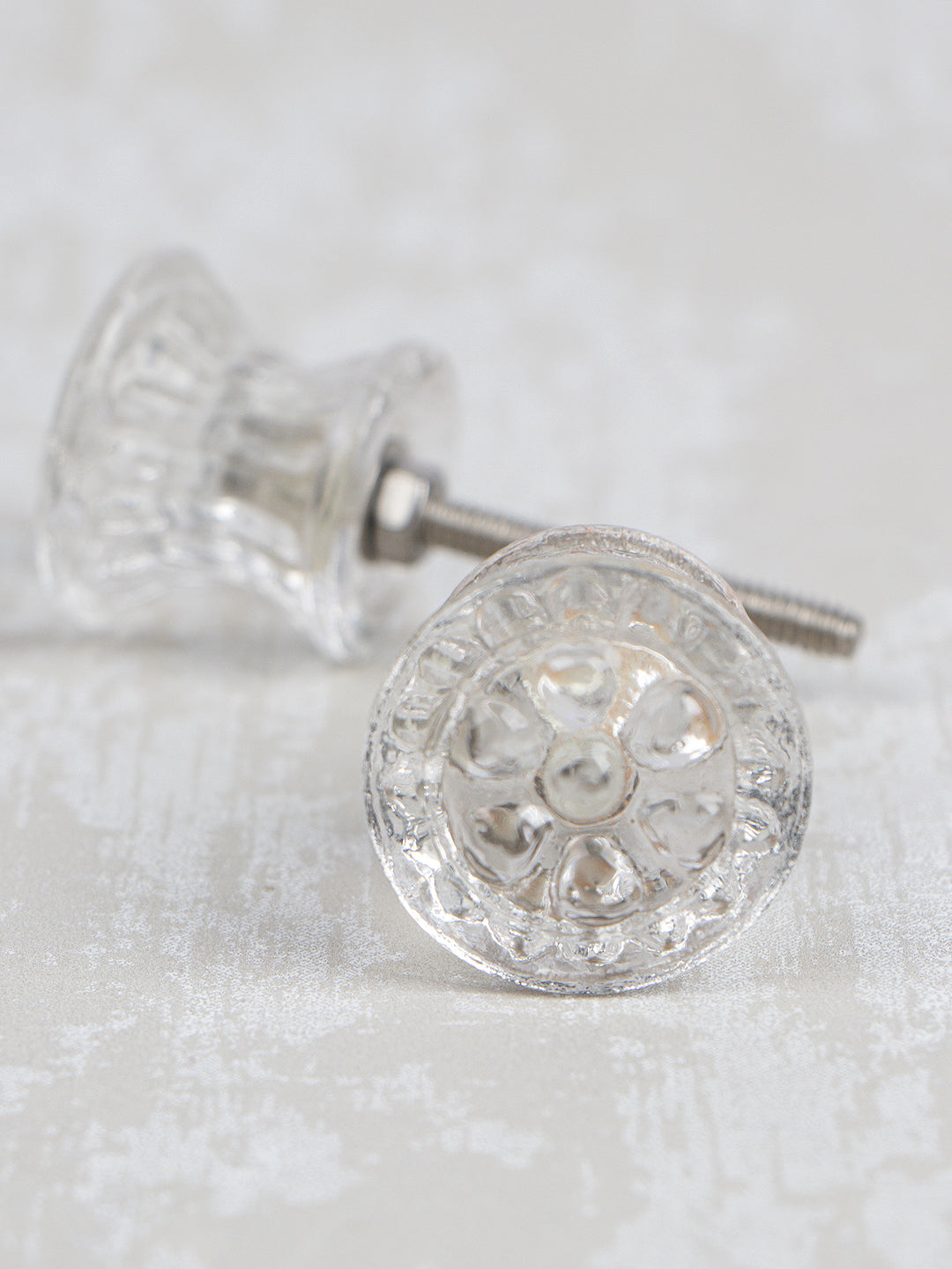 Vintage Crystalline Clear Glassware Dresser Cabinet Knob (Small)