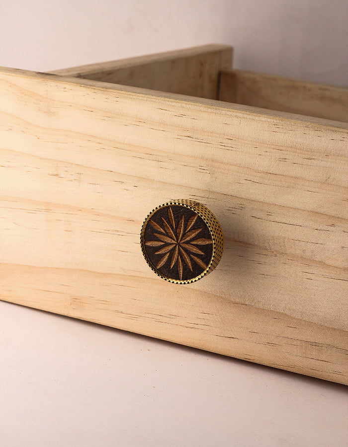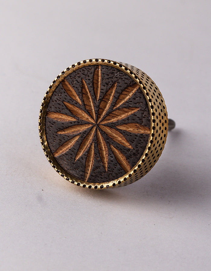 Vintage Round Black and Golden Floral Design Wooden Door Knob