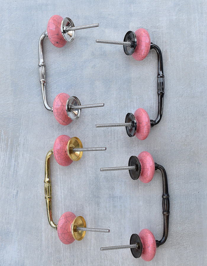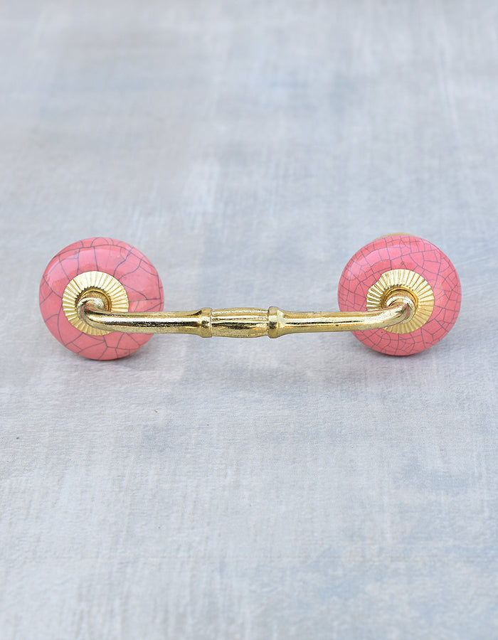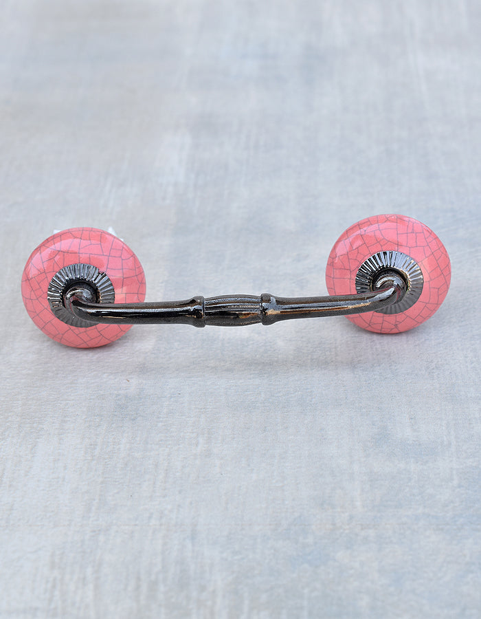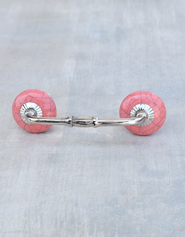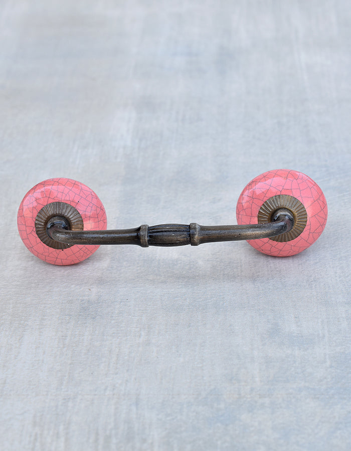 Vintage Round Cracked Salmon Pink Ceramic Drawer Cabinet Pull