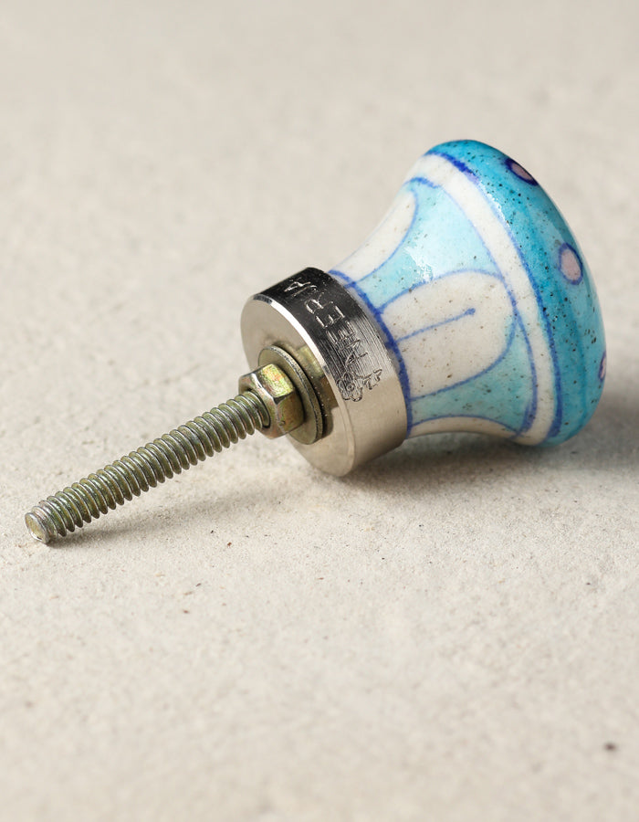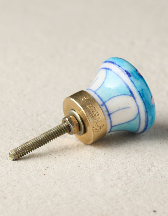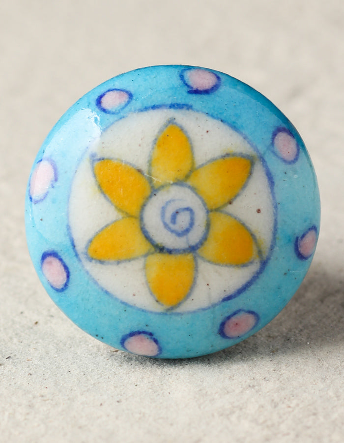 Vintage Turquoise Ceramic Blue Pottery Door Knob With Yellow Flower