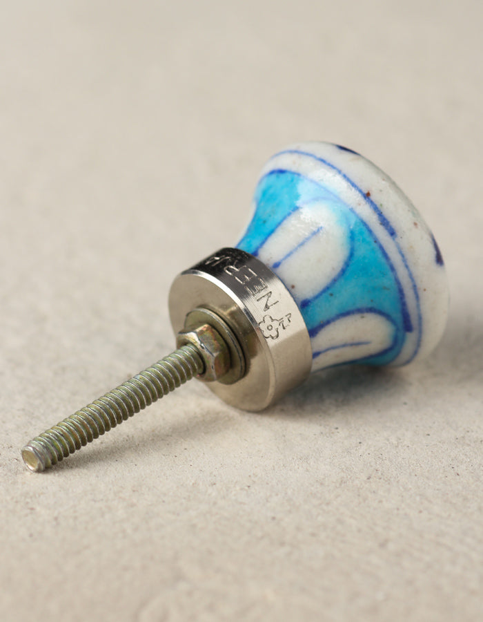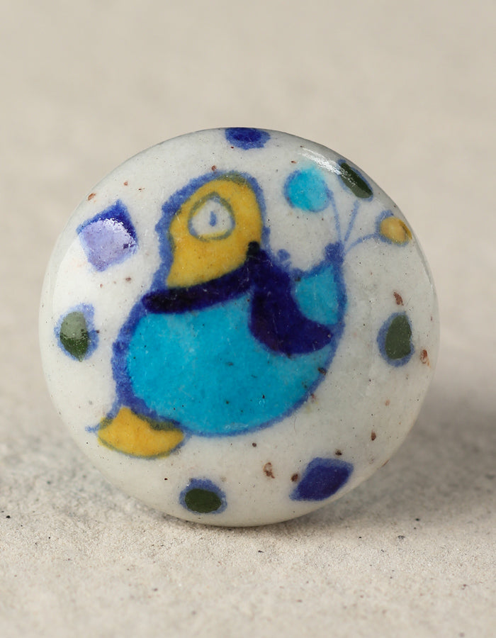 Vintage White Ceramic Blue Pottery Door Knob With Bird Print