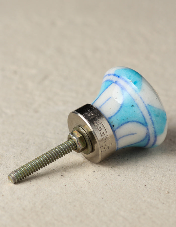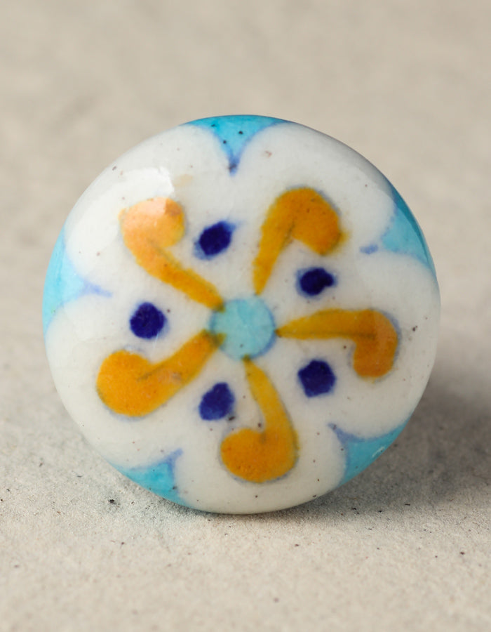 Vintage White Ceramic Door Knob With Yellow And Turquoise Design