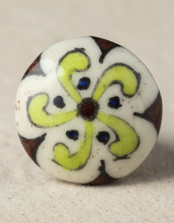 Vintage White Ceramic Kitchen Cabinet Knob With Lime Green And Blue Design