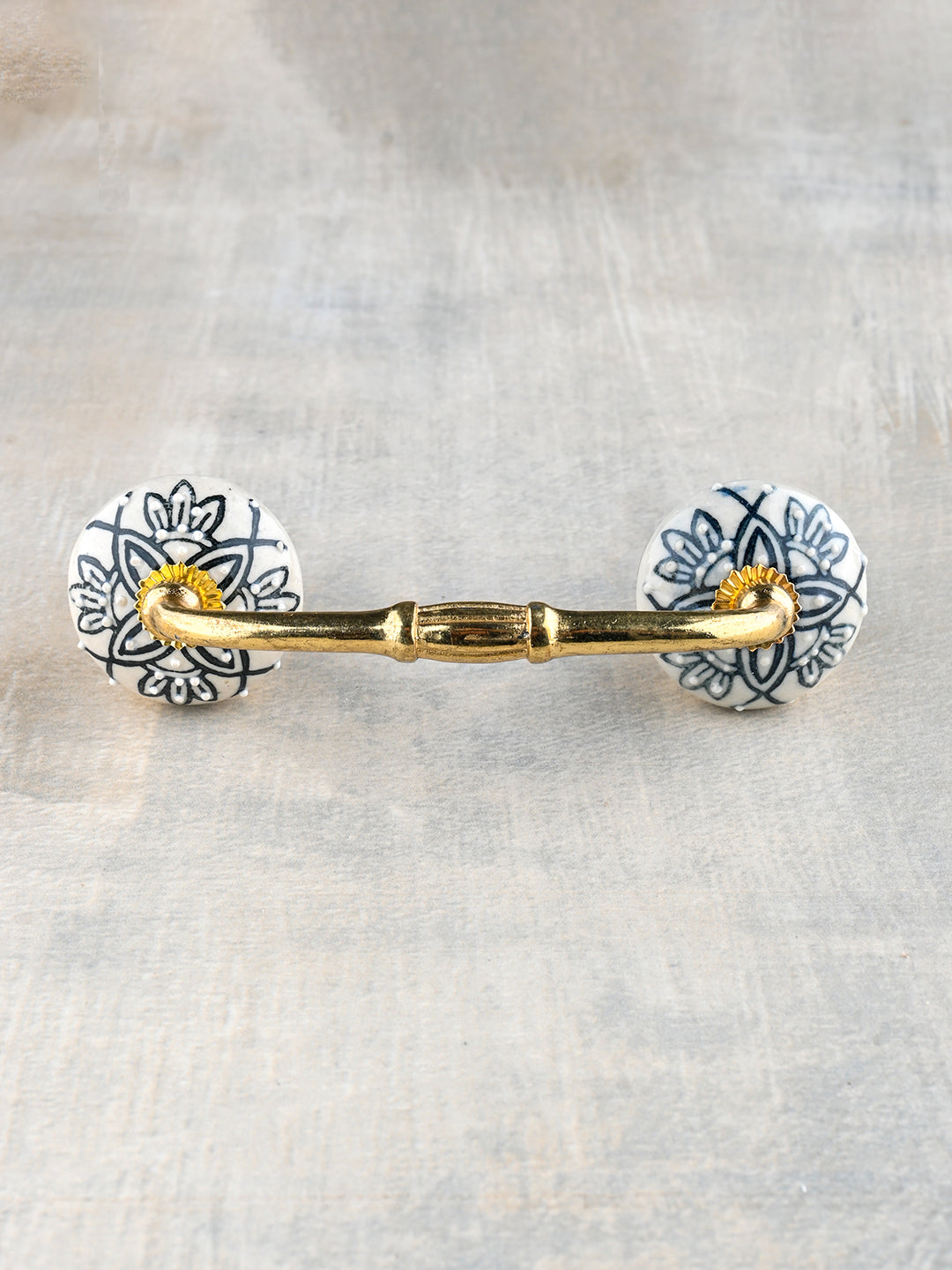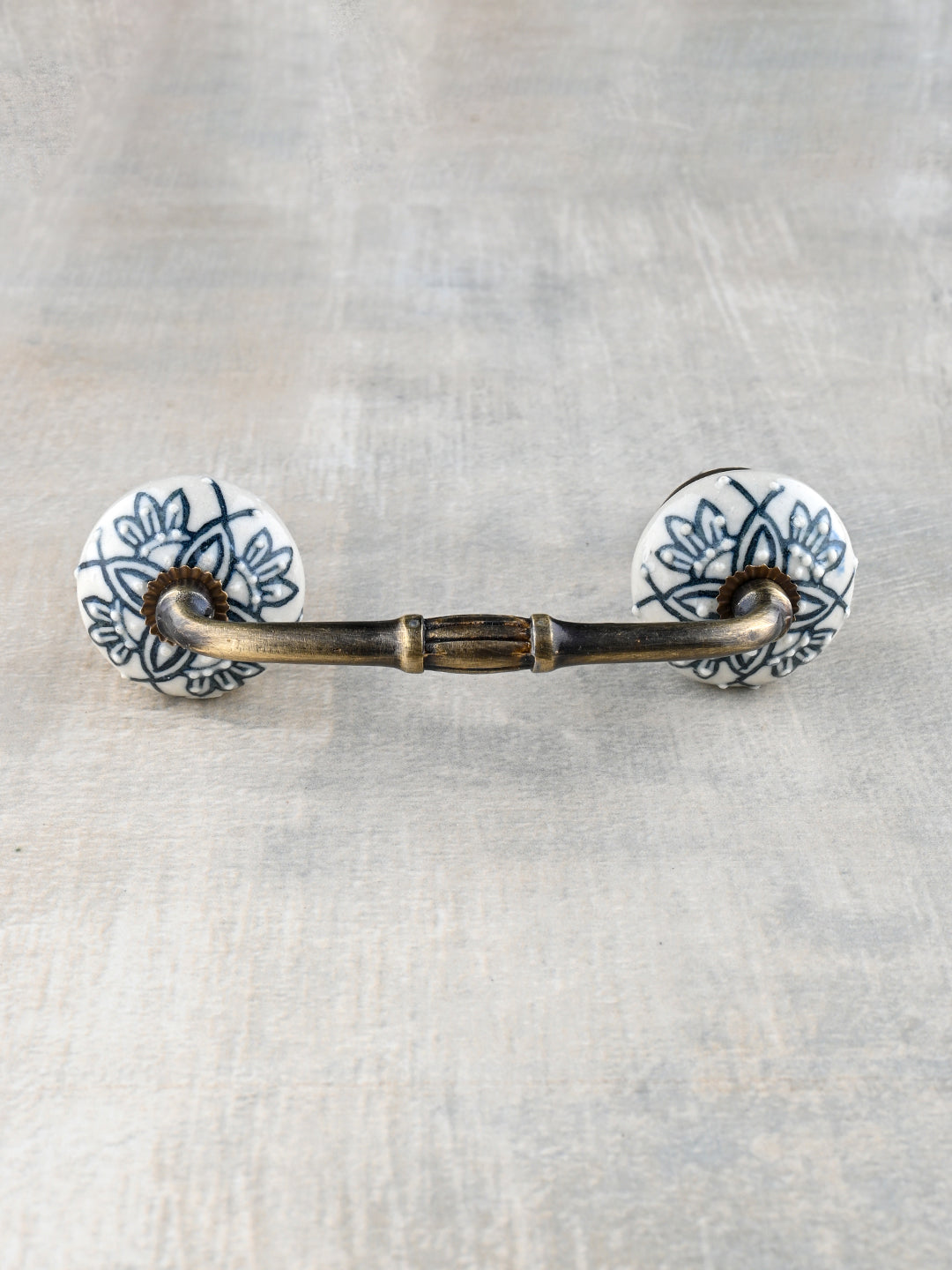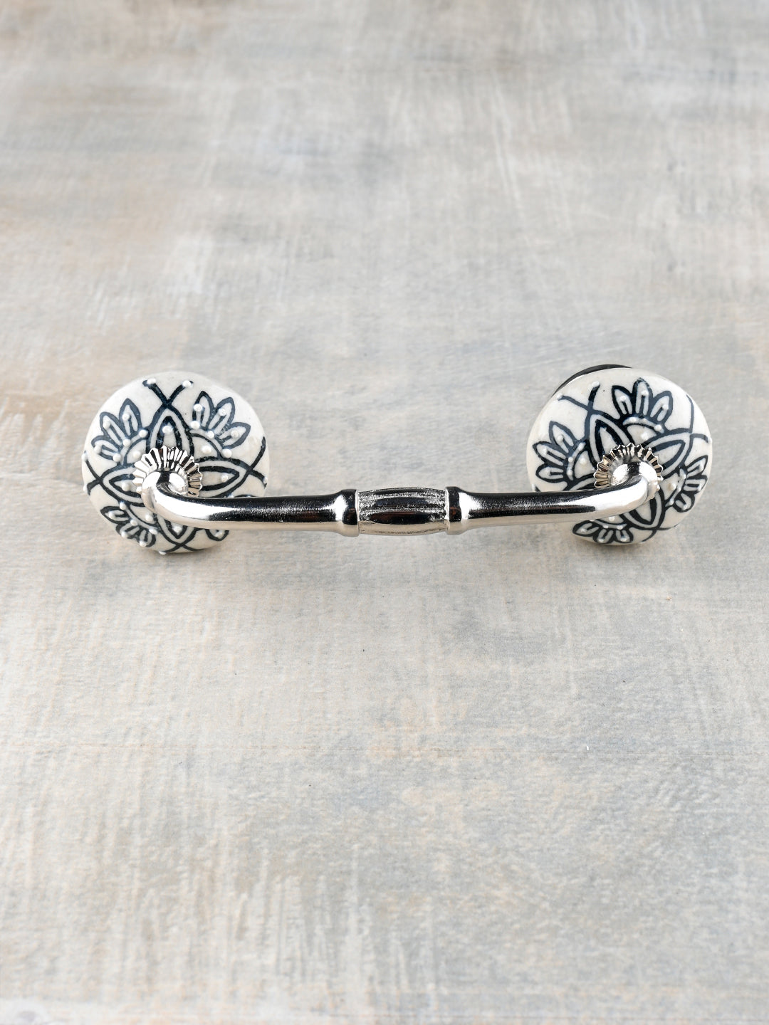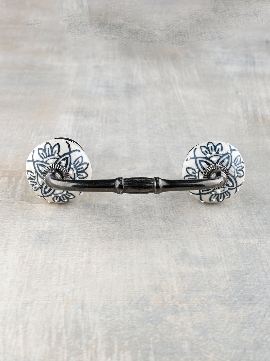 Vintage White Ceramic Kitchen Cabinet Pull With Black Designer Print