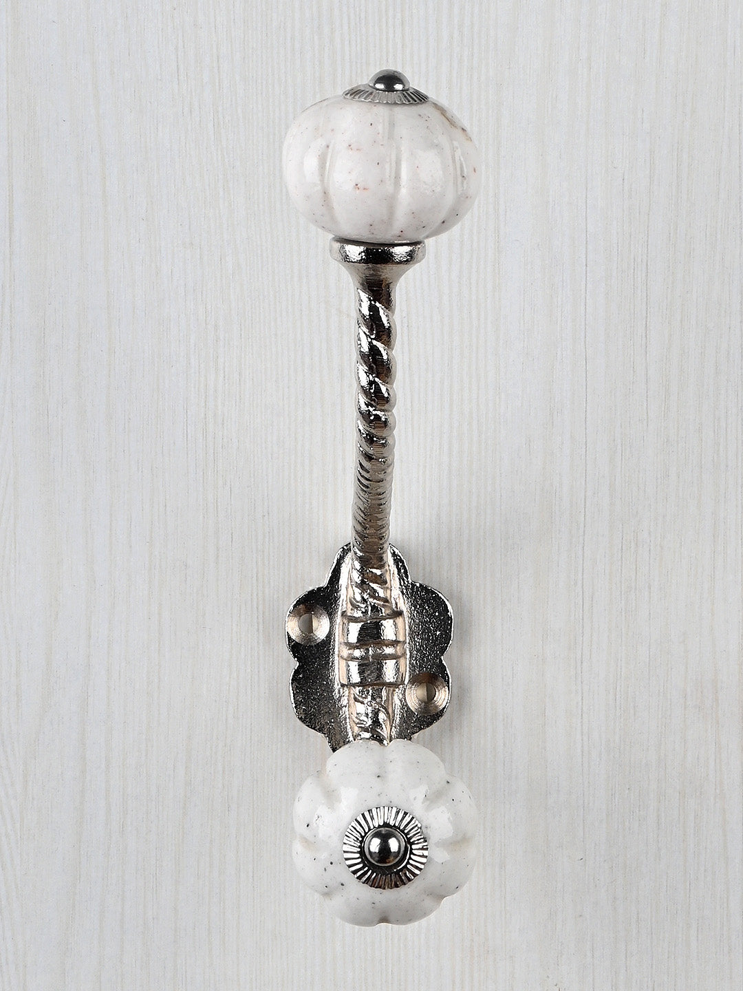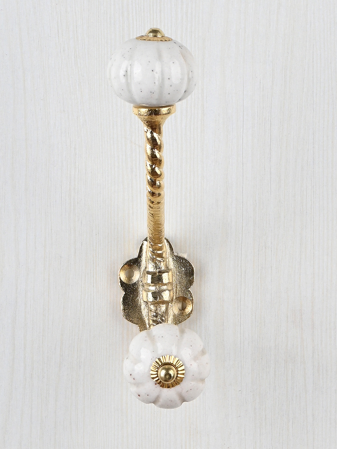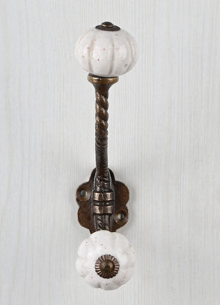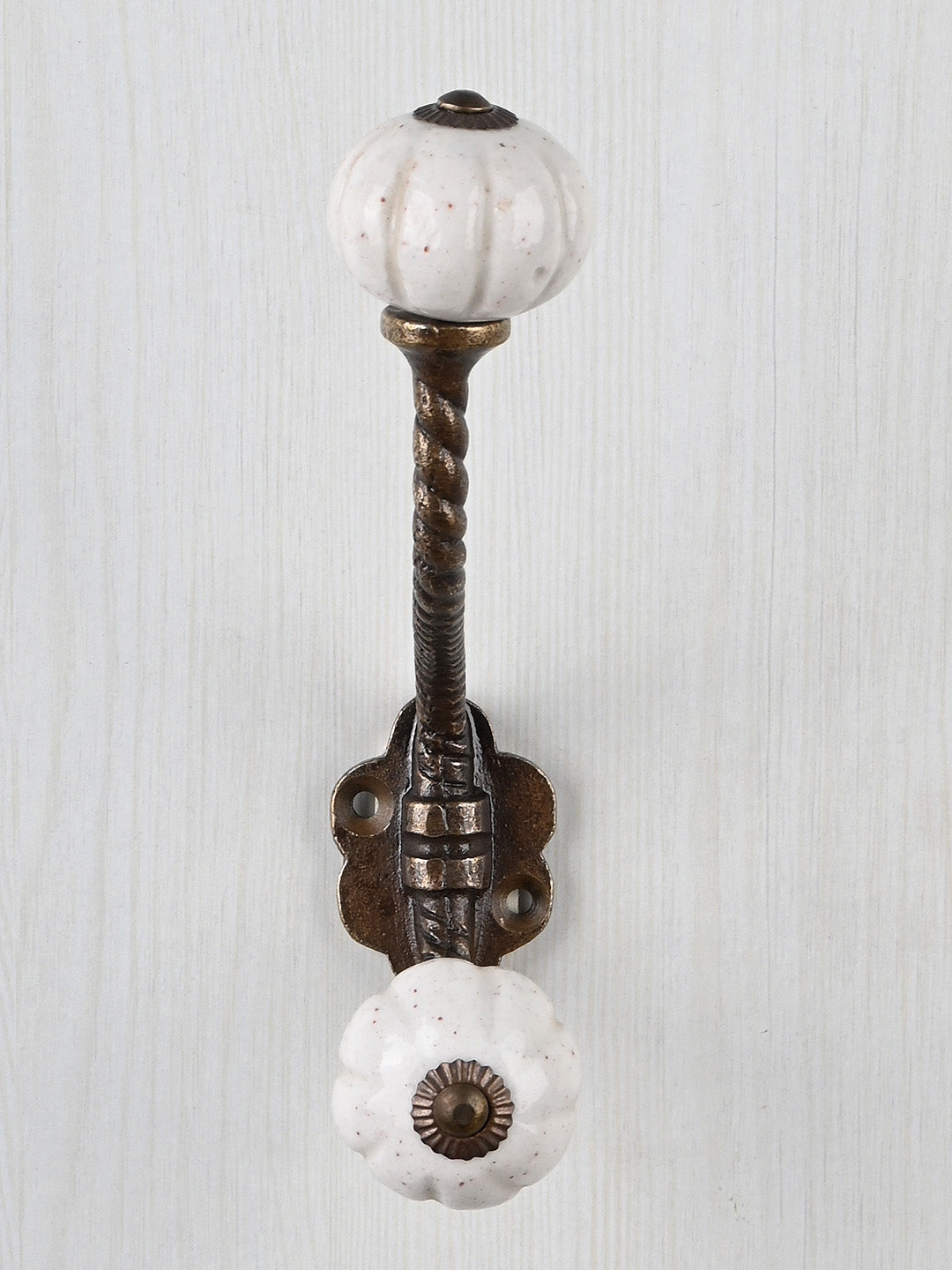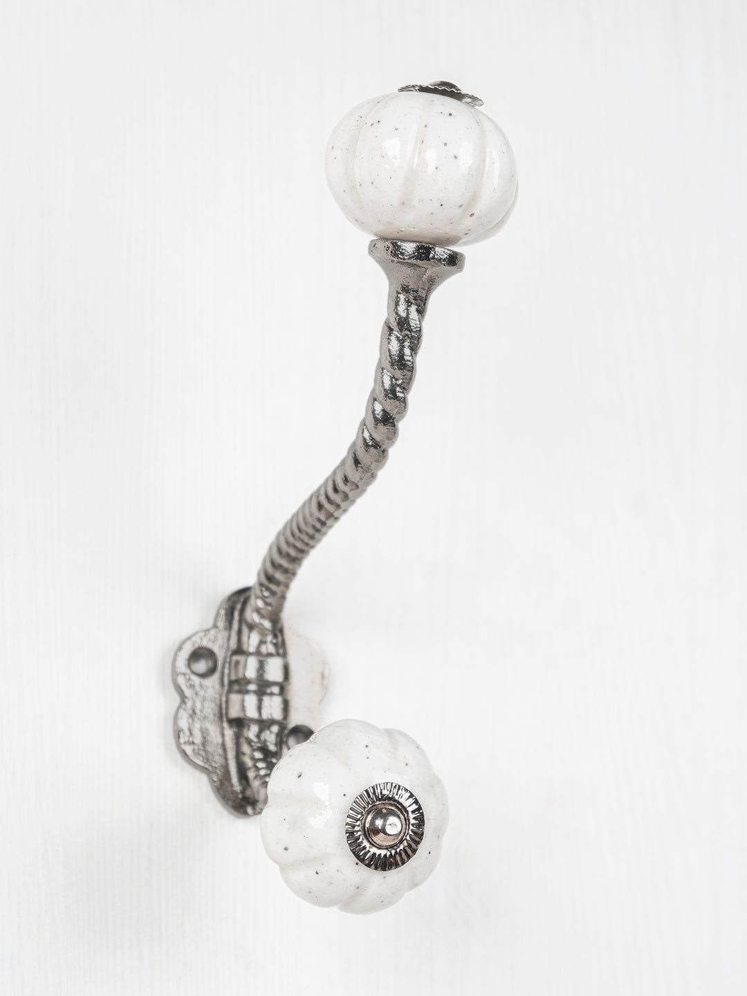 Vintage White Melon Shaped Knob With Metal Wall Hanger