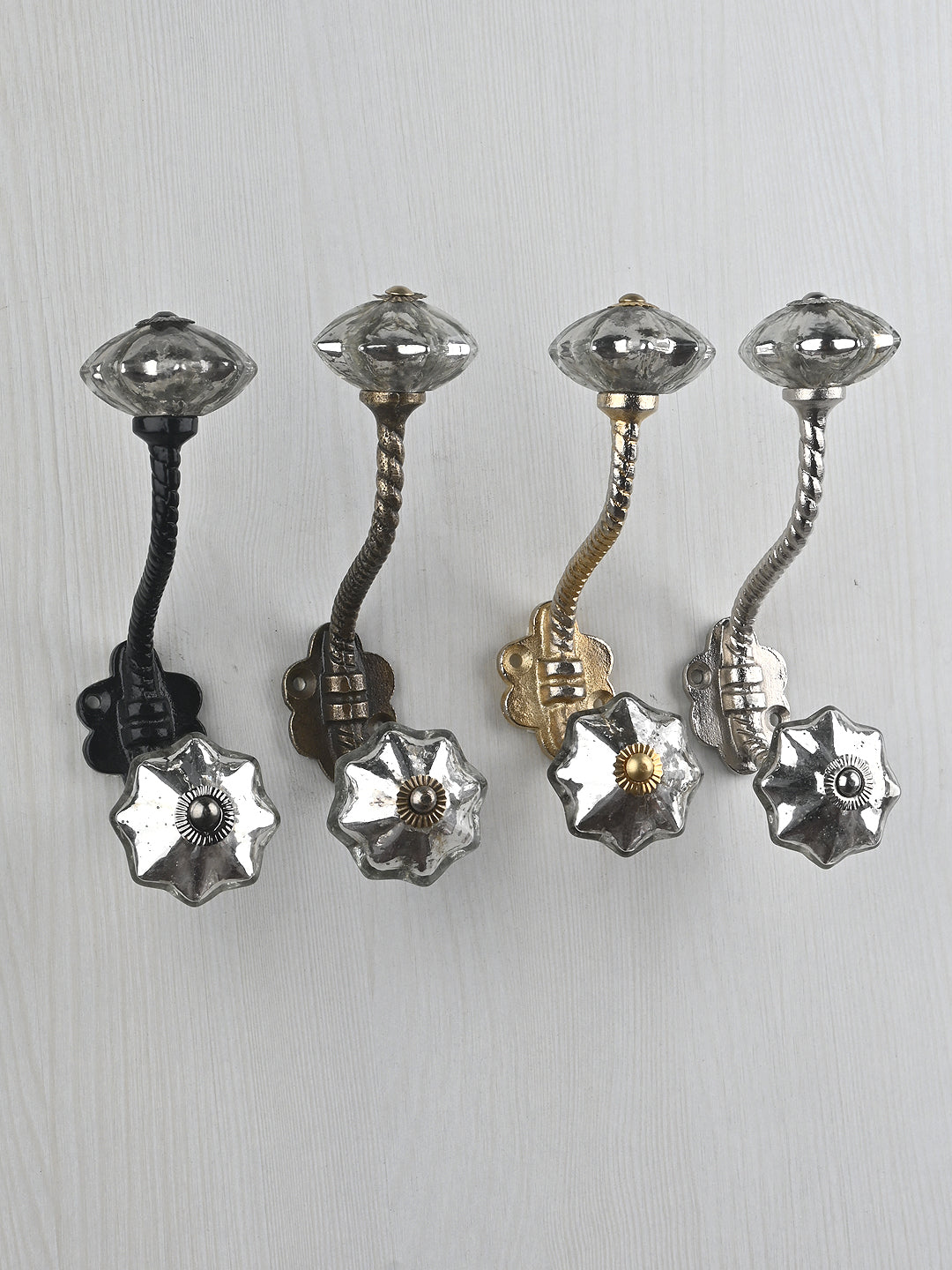 Beautifully crafted theses hooks can be used to hang scarves, coat, jewellery, towels, caps etc. Ethnic looking these hooks will surely add panache to your home décor. You can choose metal finish options like Silver, Black Nickel, Brass and Brass Antique.