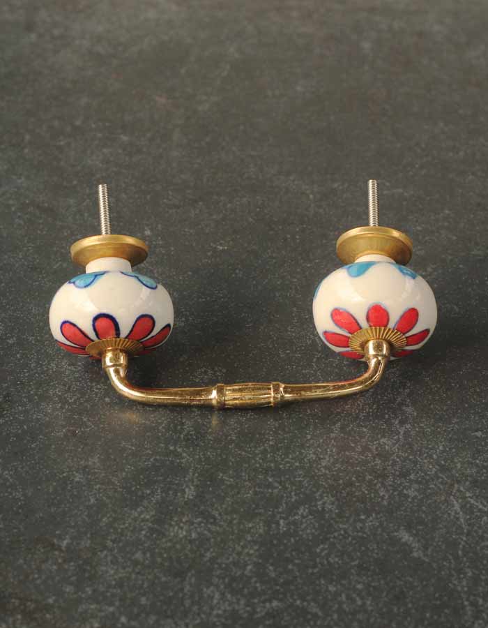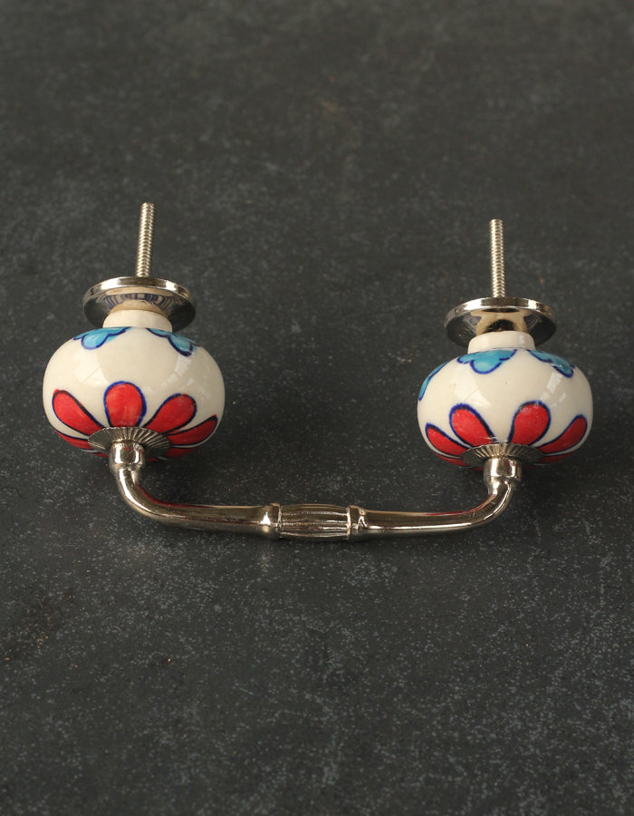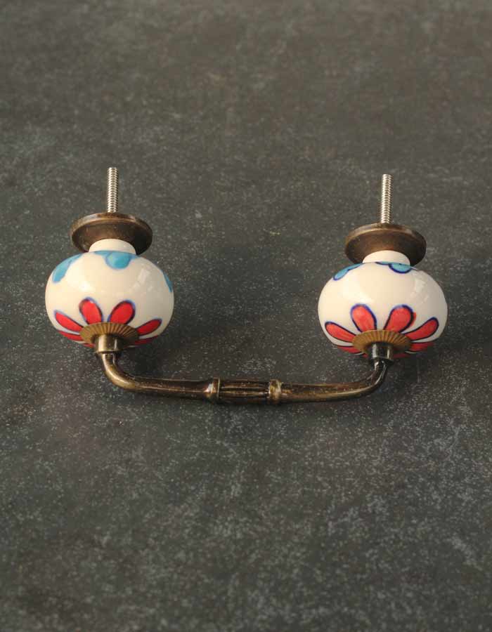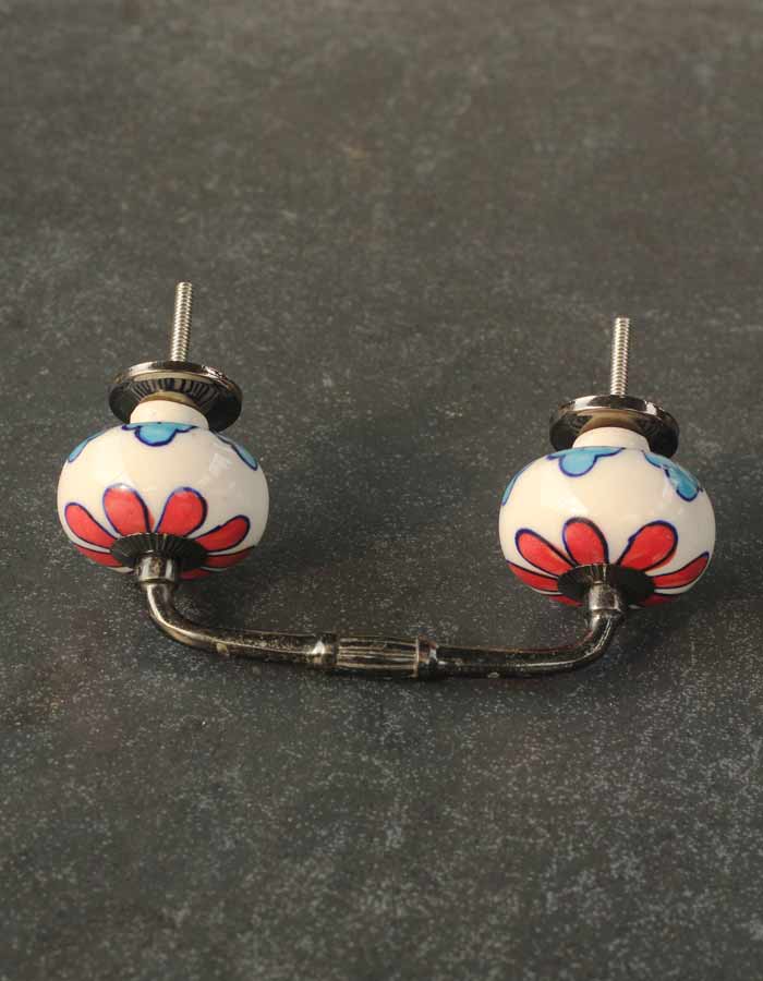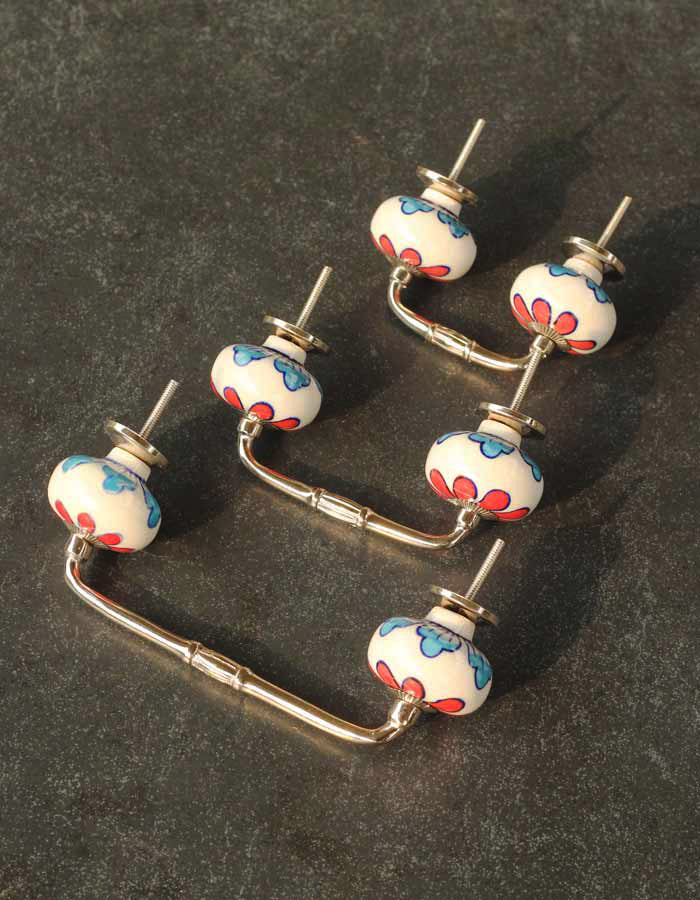 Well Designed White Dresser Cabinet Pull With Flower Print Knobs