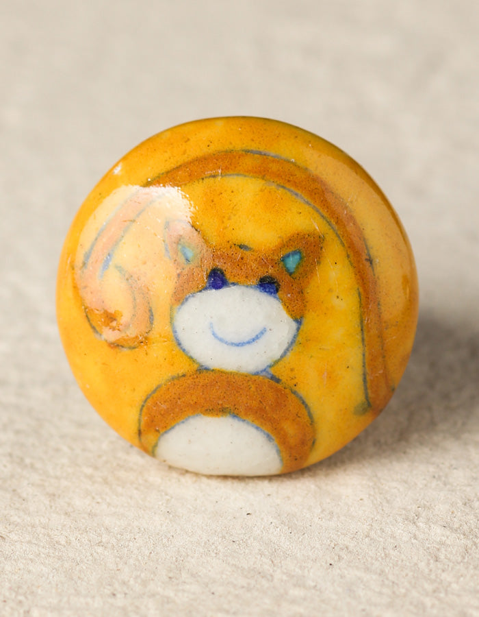 Well Designed Yellow Ceramic Drawer Knob With Handmade Monkey Print