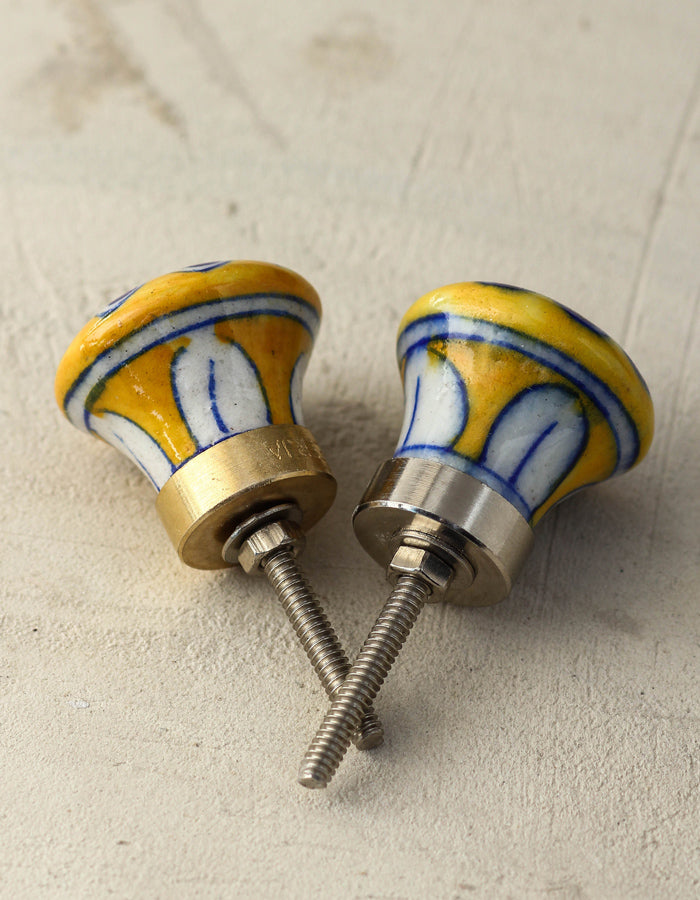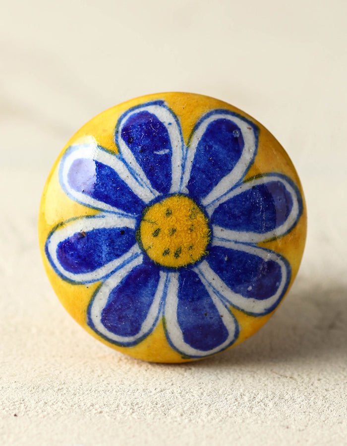 Well Designed Yellow Dresser Blue Pottery Cabinet Knob With Blue Flower