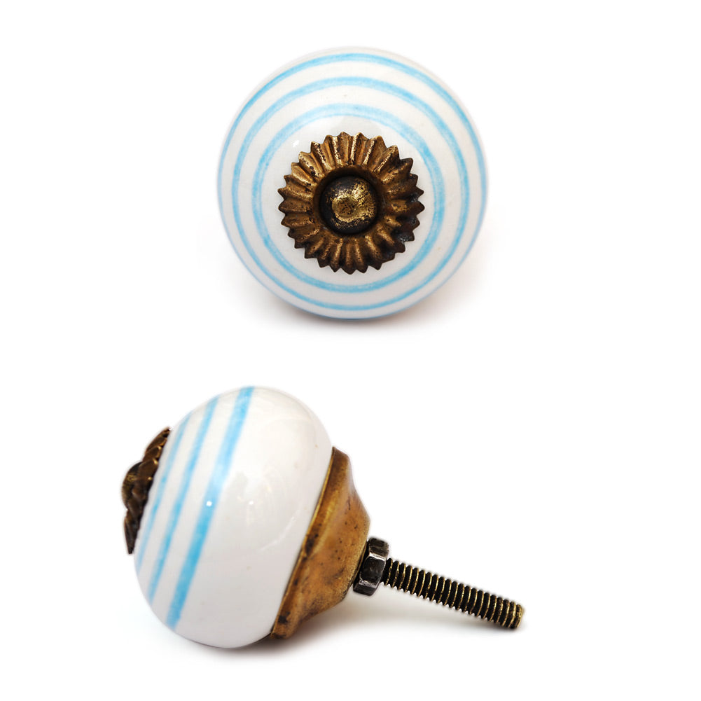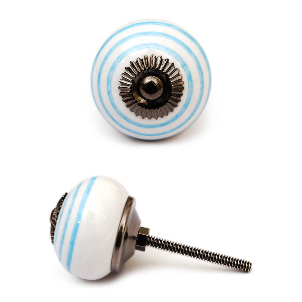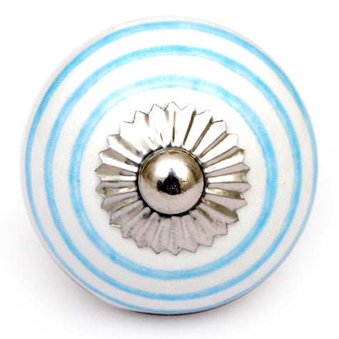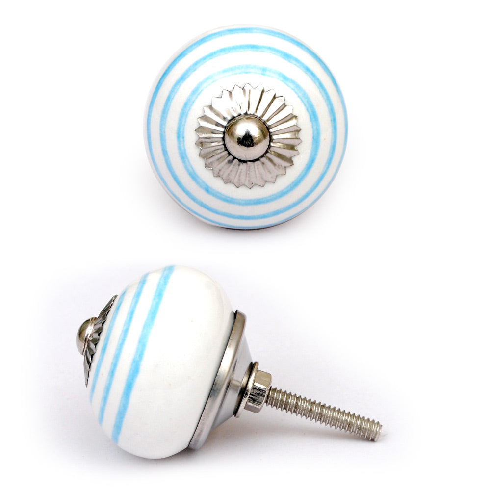 White And Turquoise Spiral Hand Painted Cabinet Knob